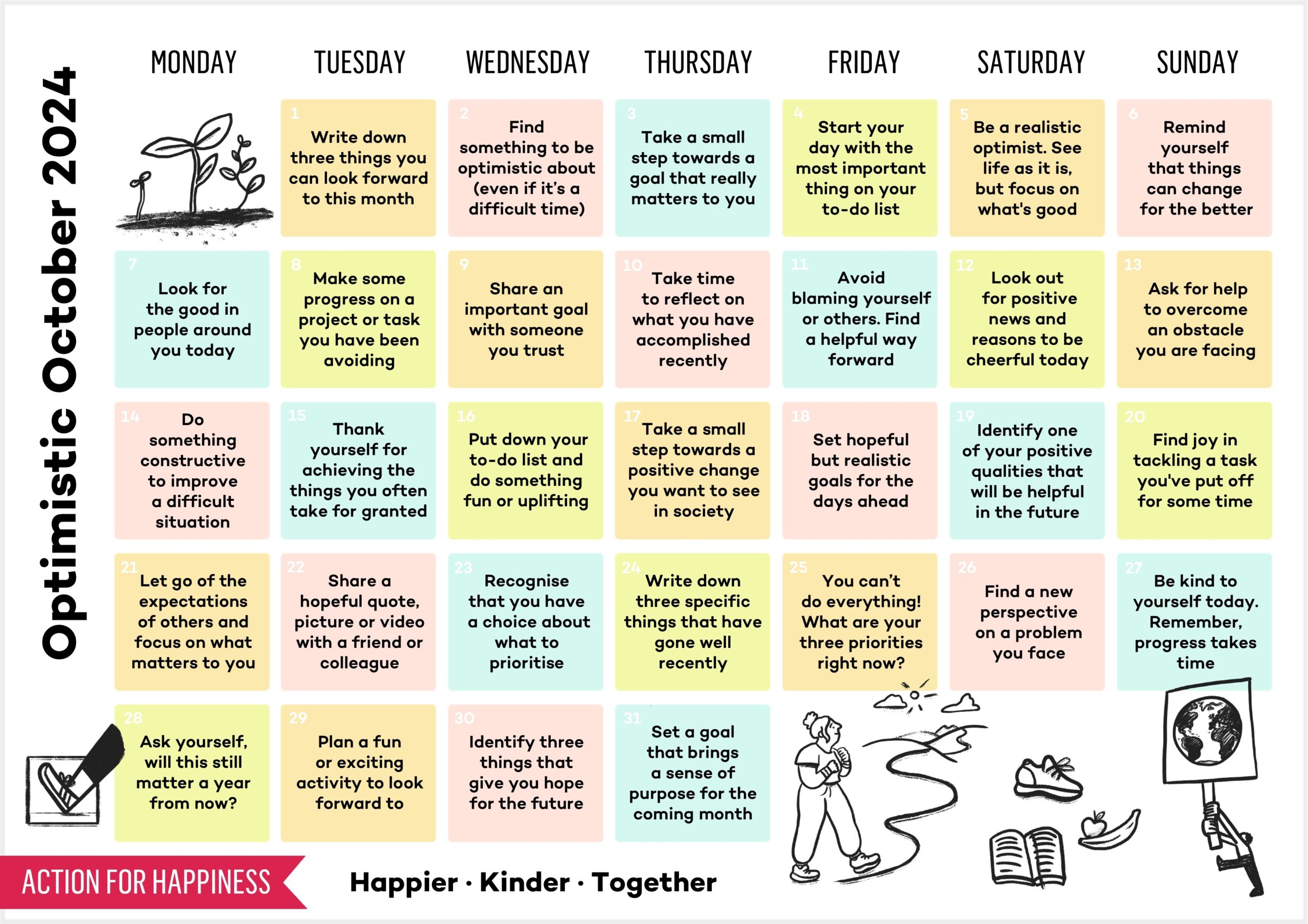 October 2025 is just around the corner, which means it’s time to start thinking about how you can bring more joy and positivity into your life. One great way to do this is by using the Action For Happiness Calendar for October 2025.