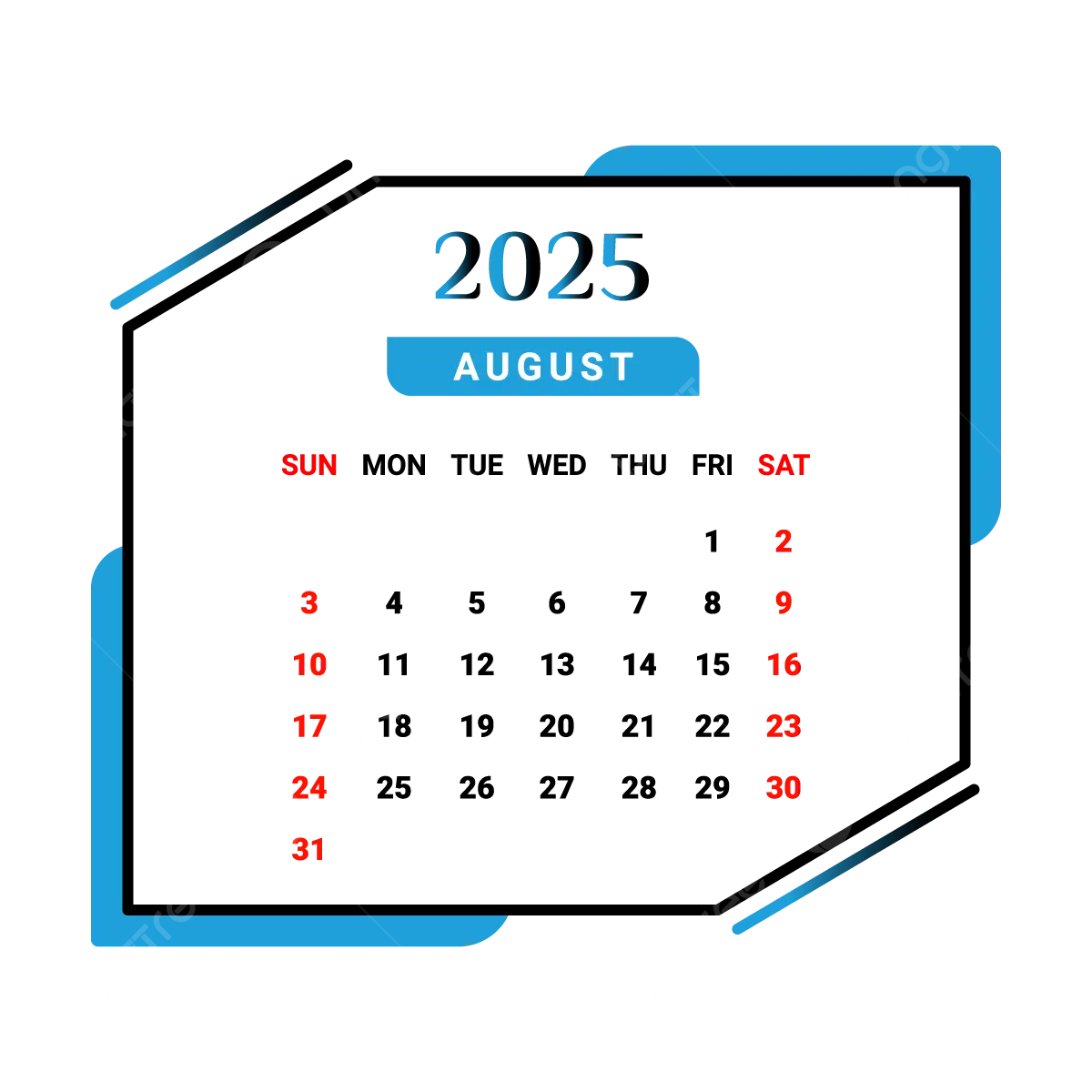 2025 August Month Calendar Skyblue And Black Vector Monthly Calendar Calendar August 2025 PNG And Vector With Transparent Background For Free Download
