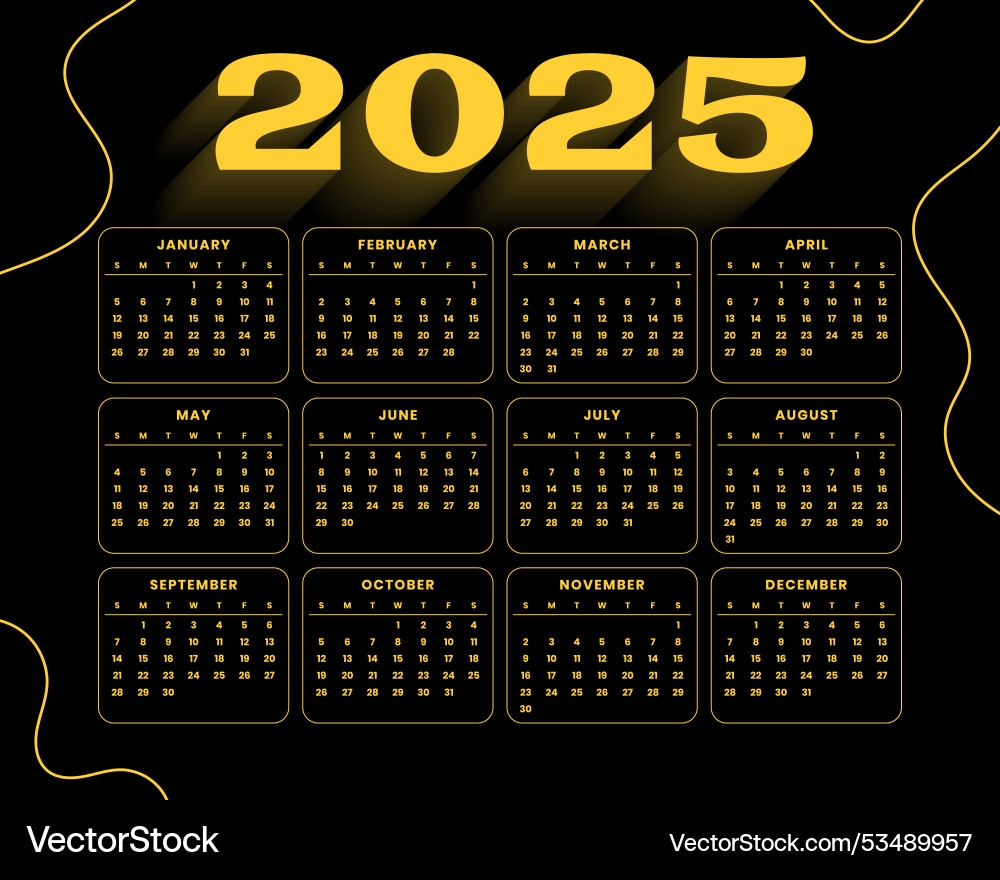 Black Golden 2025 New Year Calendar Template Vector Image