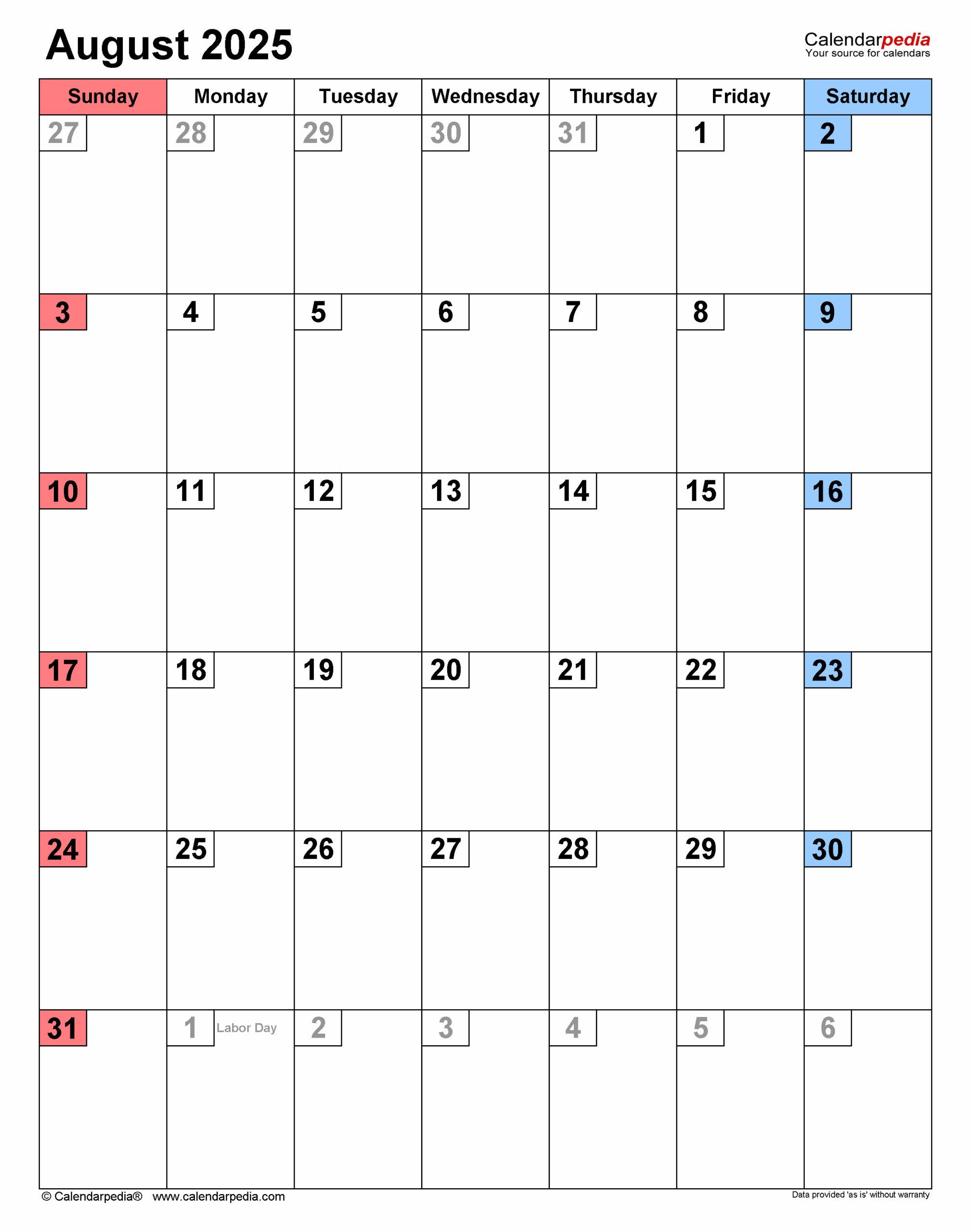 Whether you prefer a traditional monthly layout or a more modern design, Calendarpedia offers a variety of August 2025 calendar templates to suit your style. Simply choose the format that works best for you and start planning your month with ease.
