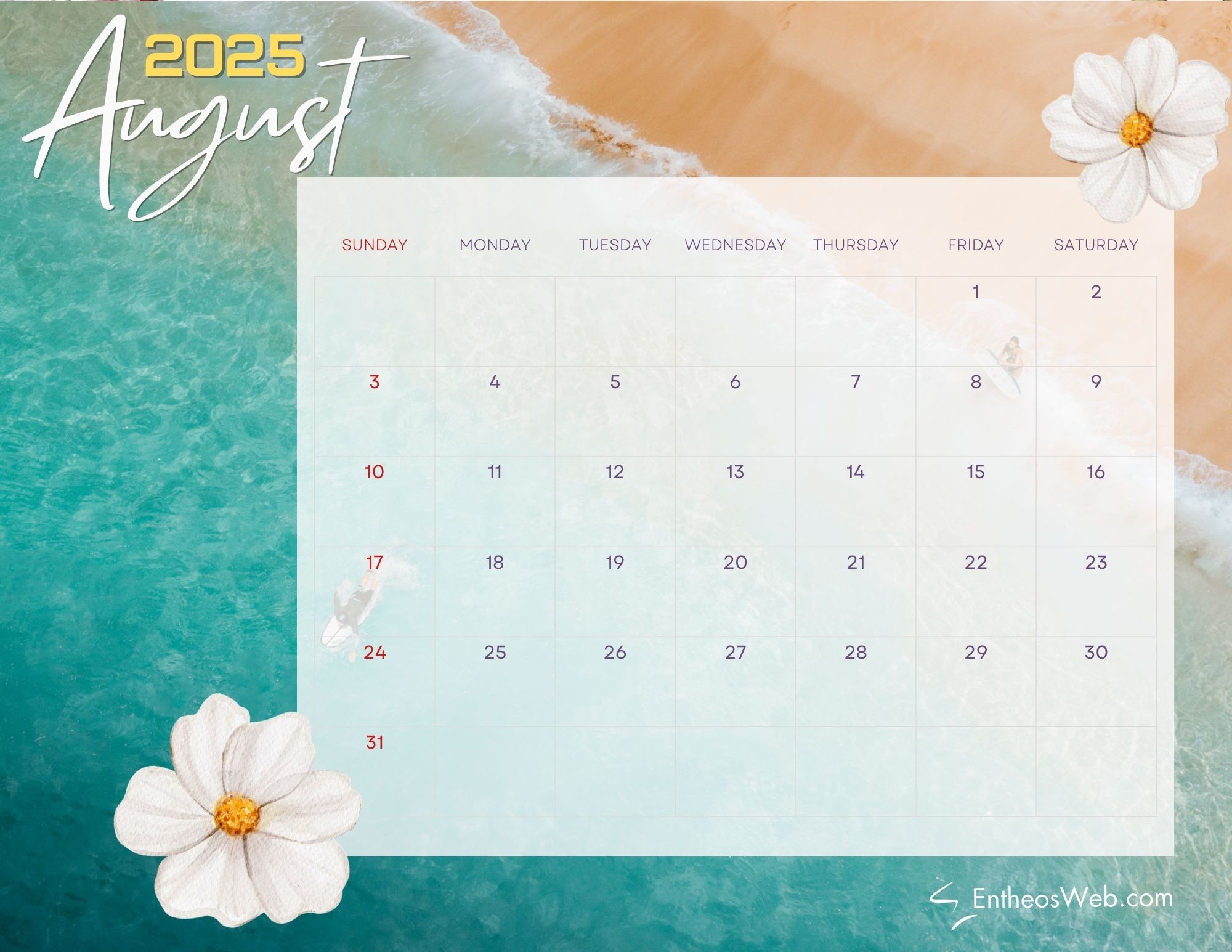 August 2025 Calendar Free PDF Printables EntheosWeb