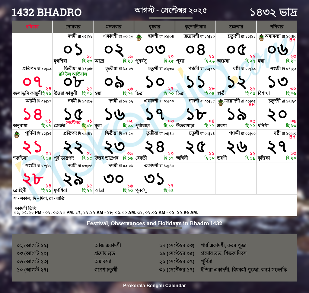 Hindu Calendar 2025 August