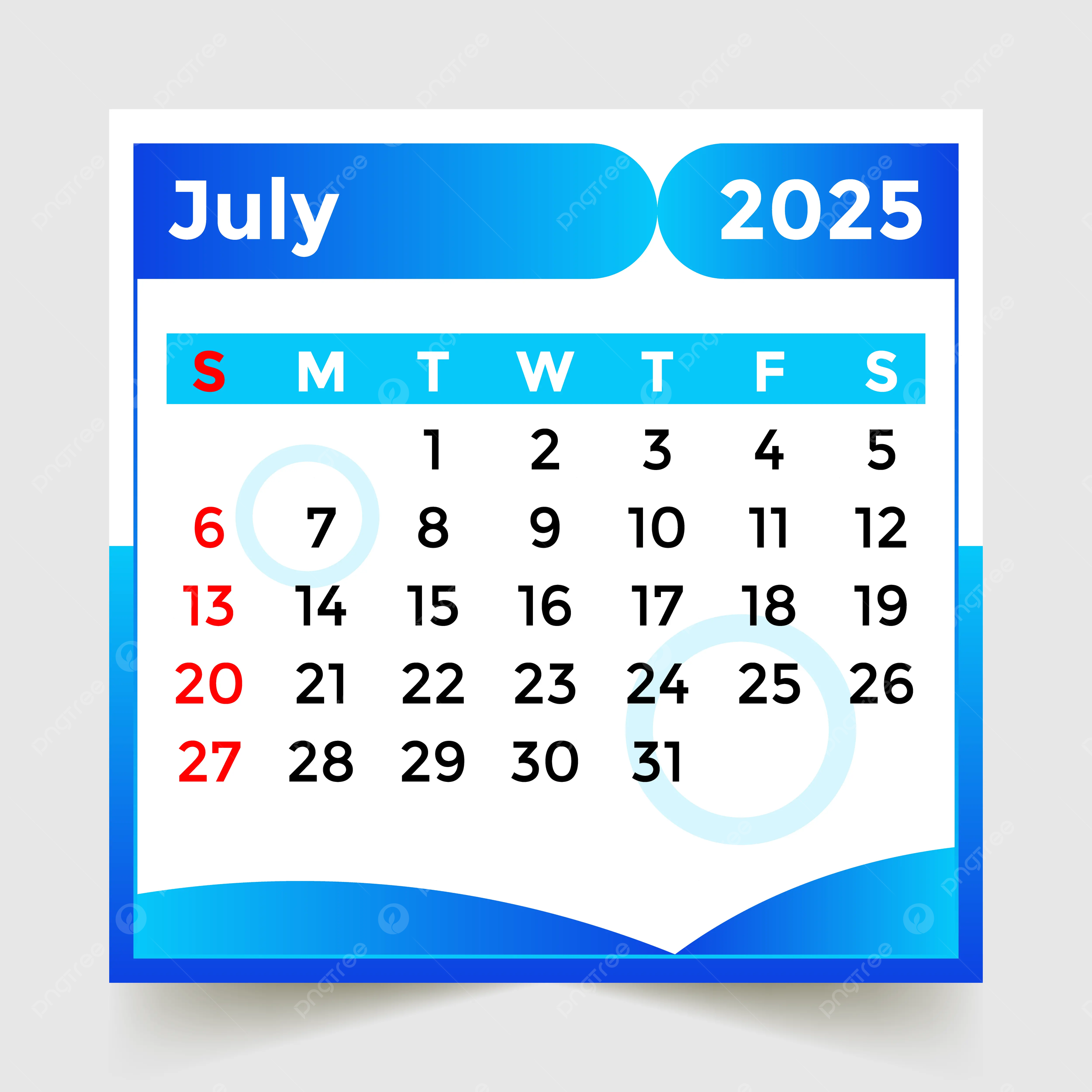 Calendar 2025 Month Of July Skyblue Vector Template Download On Pngtree