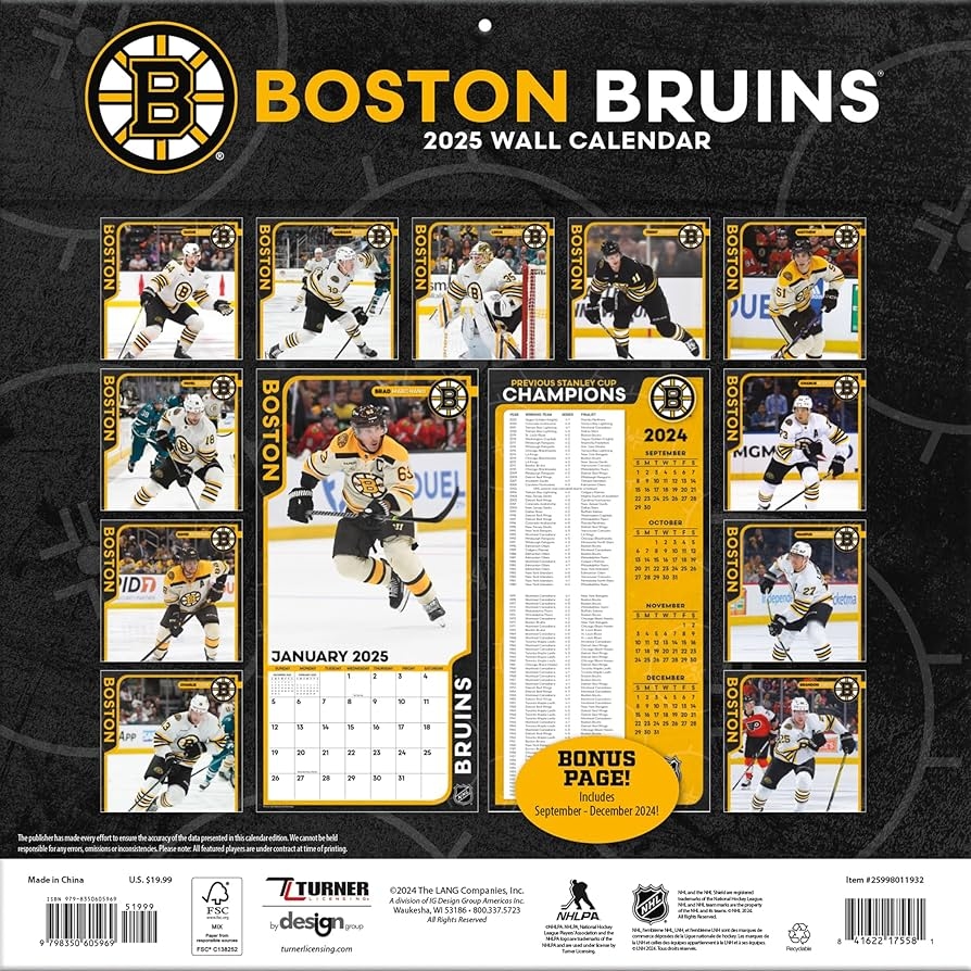 Amazon TURNER SPORTS Boston Bruins 2025 12×12 Team Wall Calendar 25998011932 Office Products