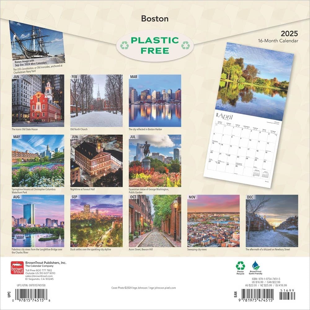 Boston 2025 12 X 24 Inch Monthly Square Wall Calendar Plastic Free BrownTrout USA United States Of America Massachusetts Northeast City
