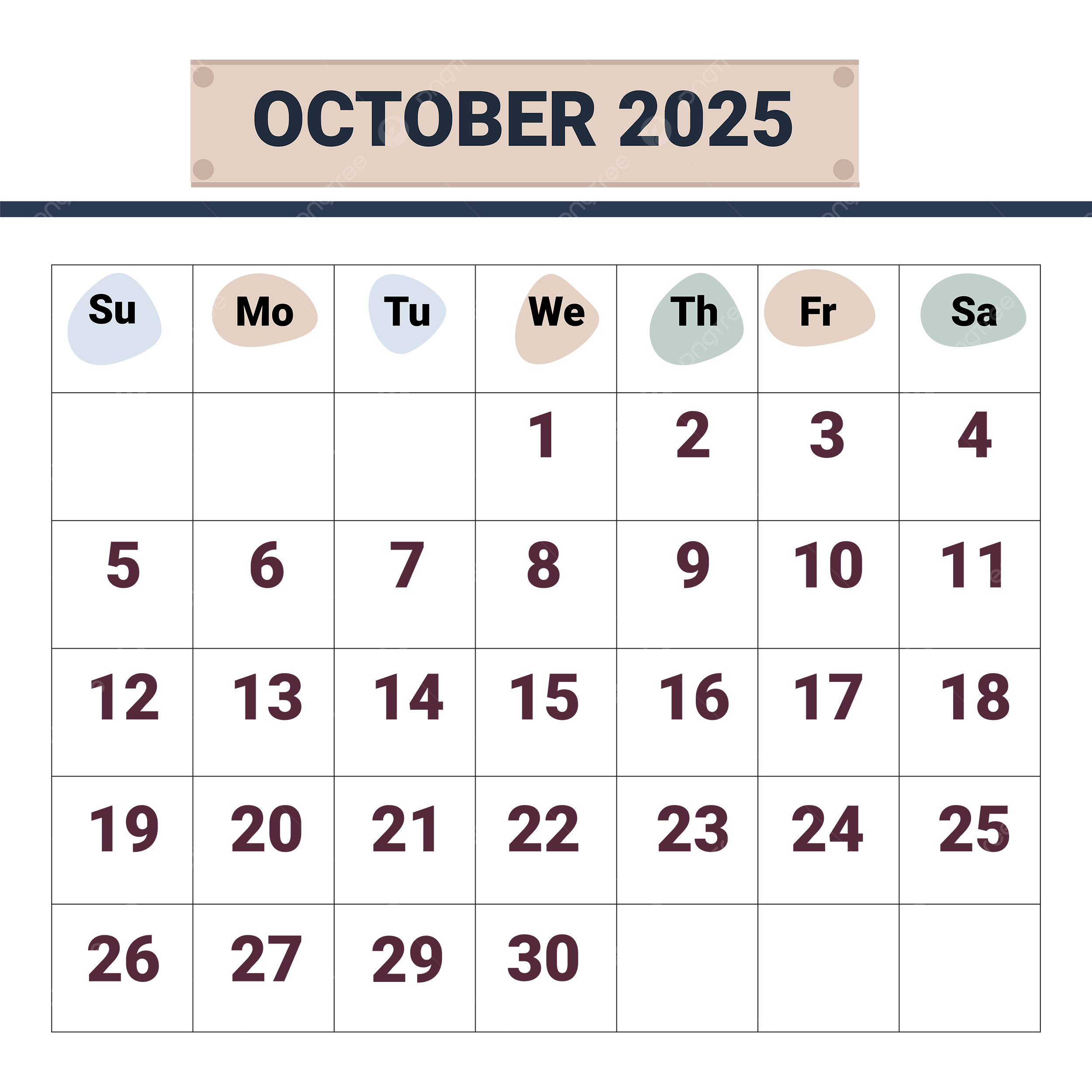 October 2025 Calendar PNG Transparent Images Free Download Vector Files Pngtree