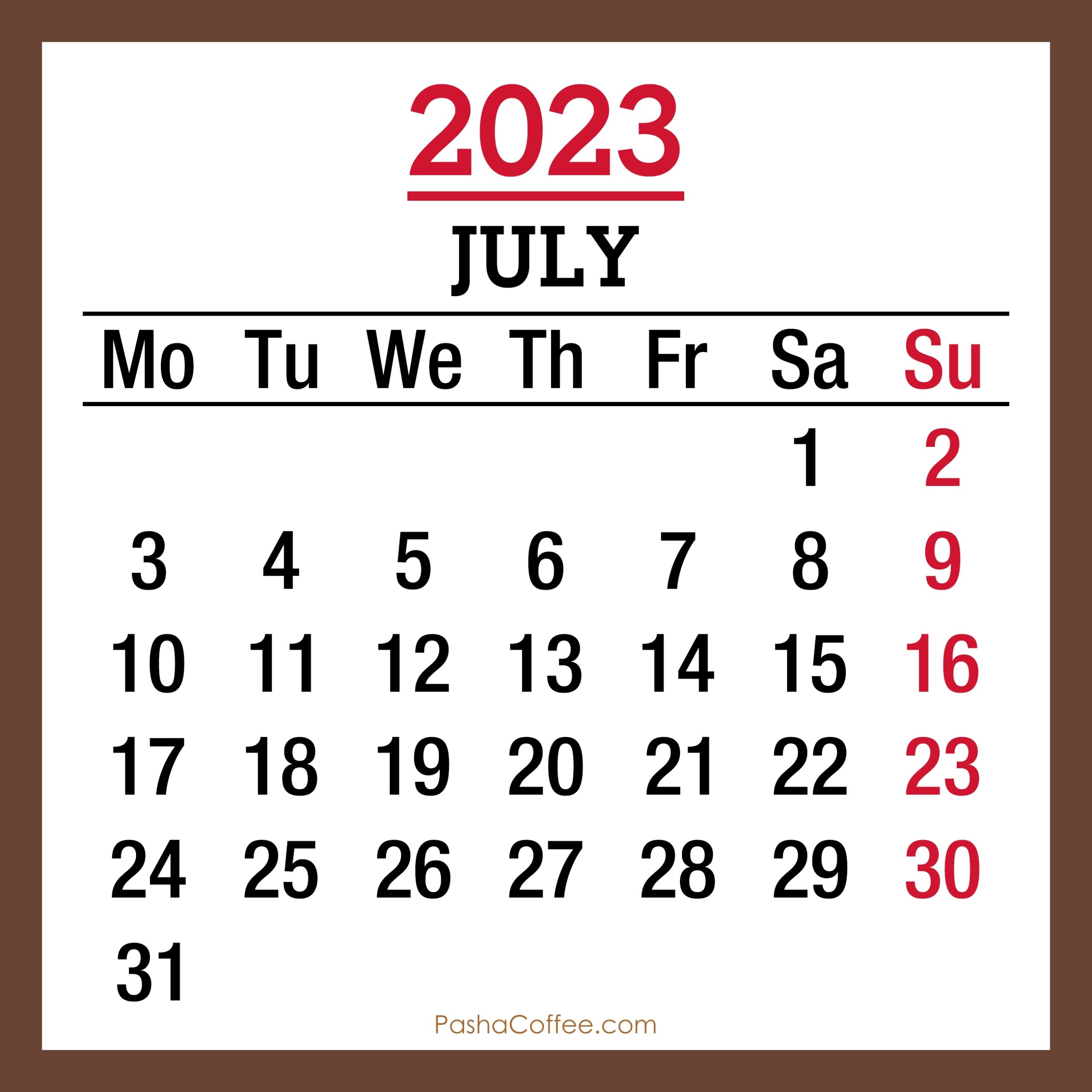 July 2023 Monthly Calendar Printable Free Brown Monday Start PashaCoffee