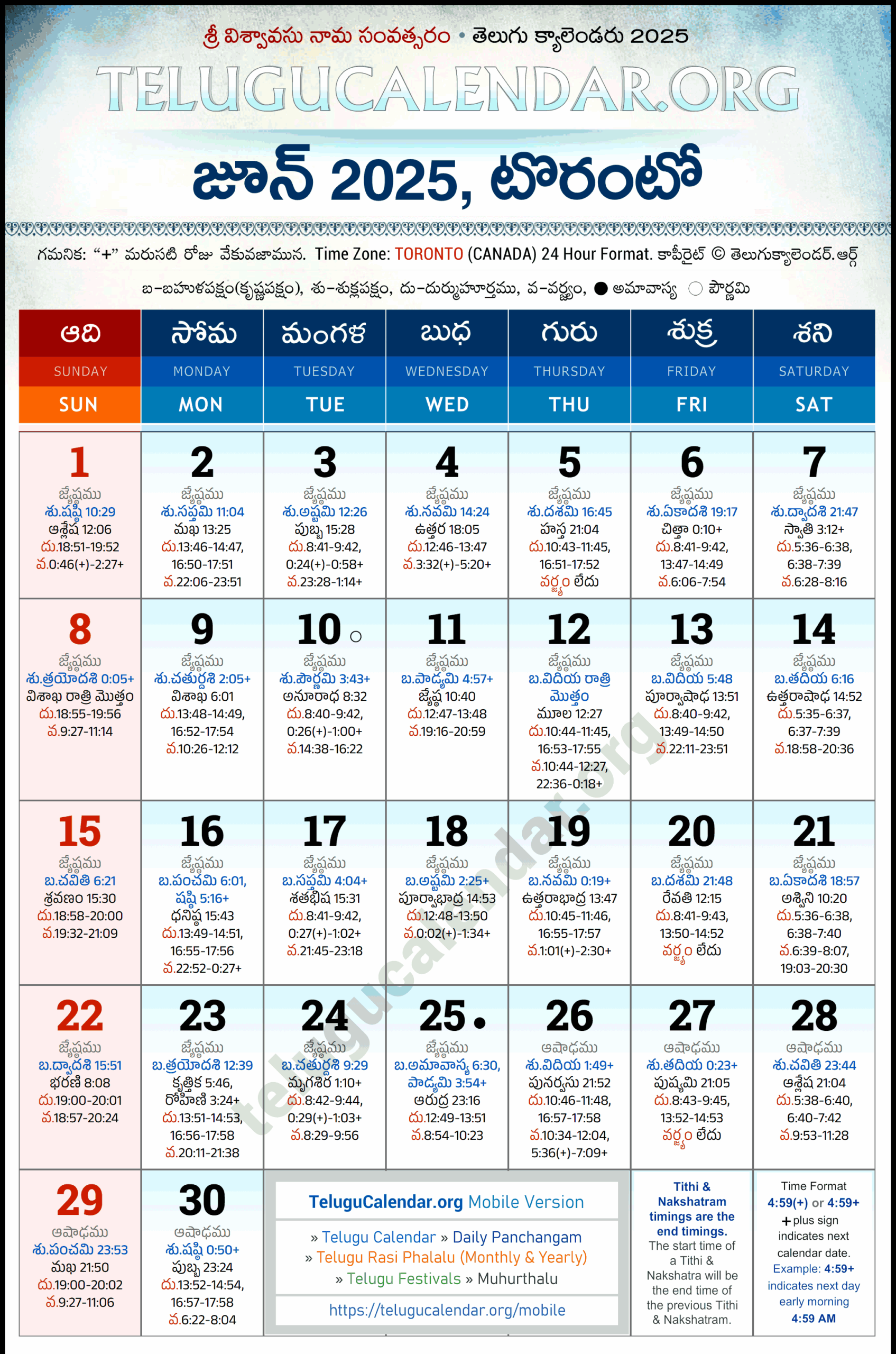 Toronto Telugu Calendar 2025 June PDF Festivals