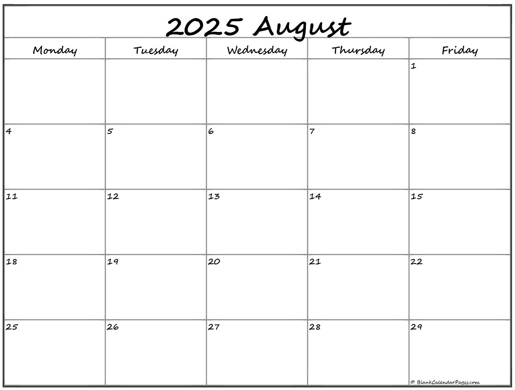 Days In August 2025 Calendar