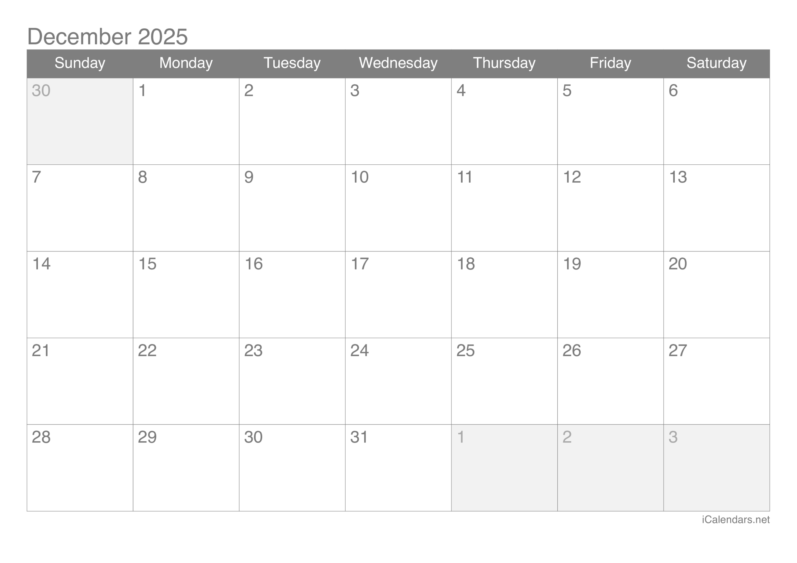 Calendar December 2025 UK With PDF Excel And Word Templates
