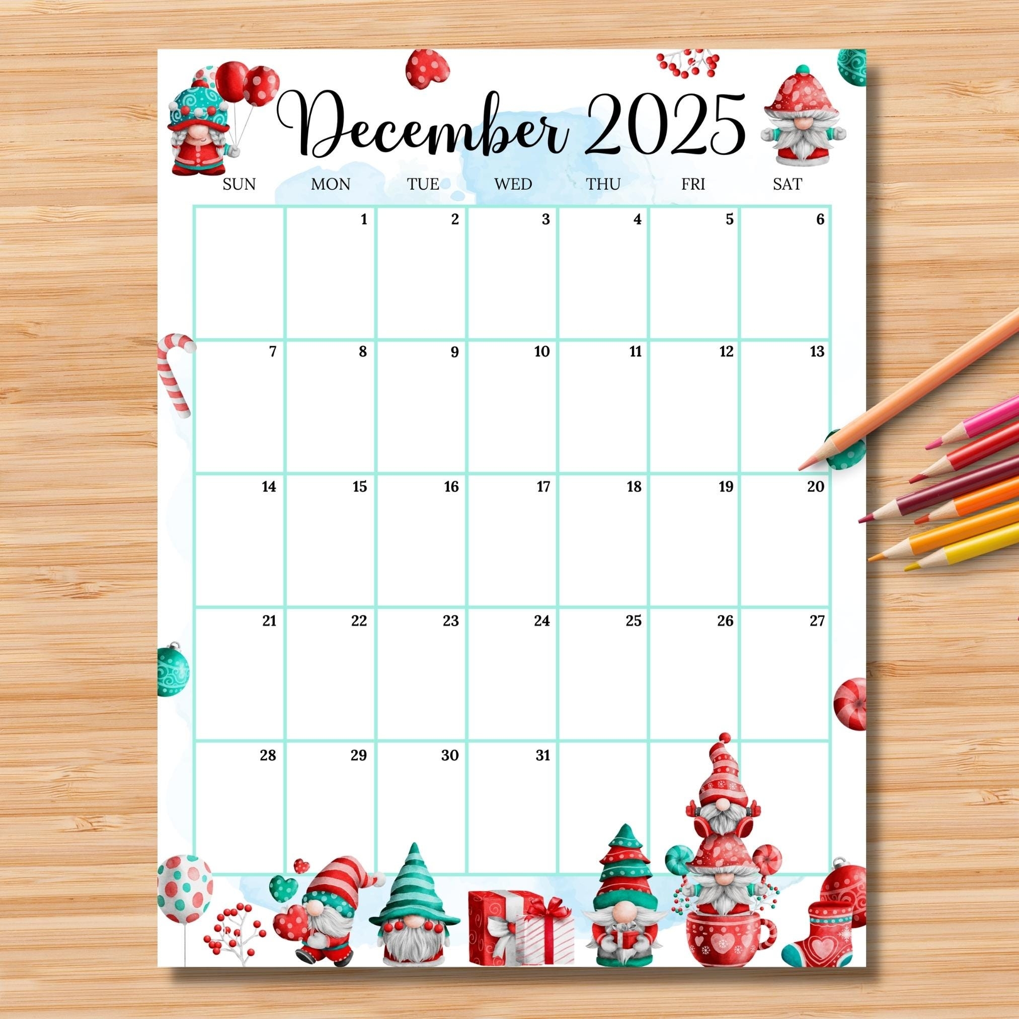 EDITABLE December 2025 Calendar vertical portrait Colorful