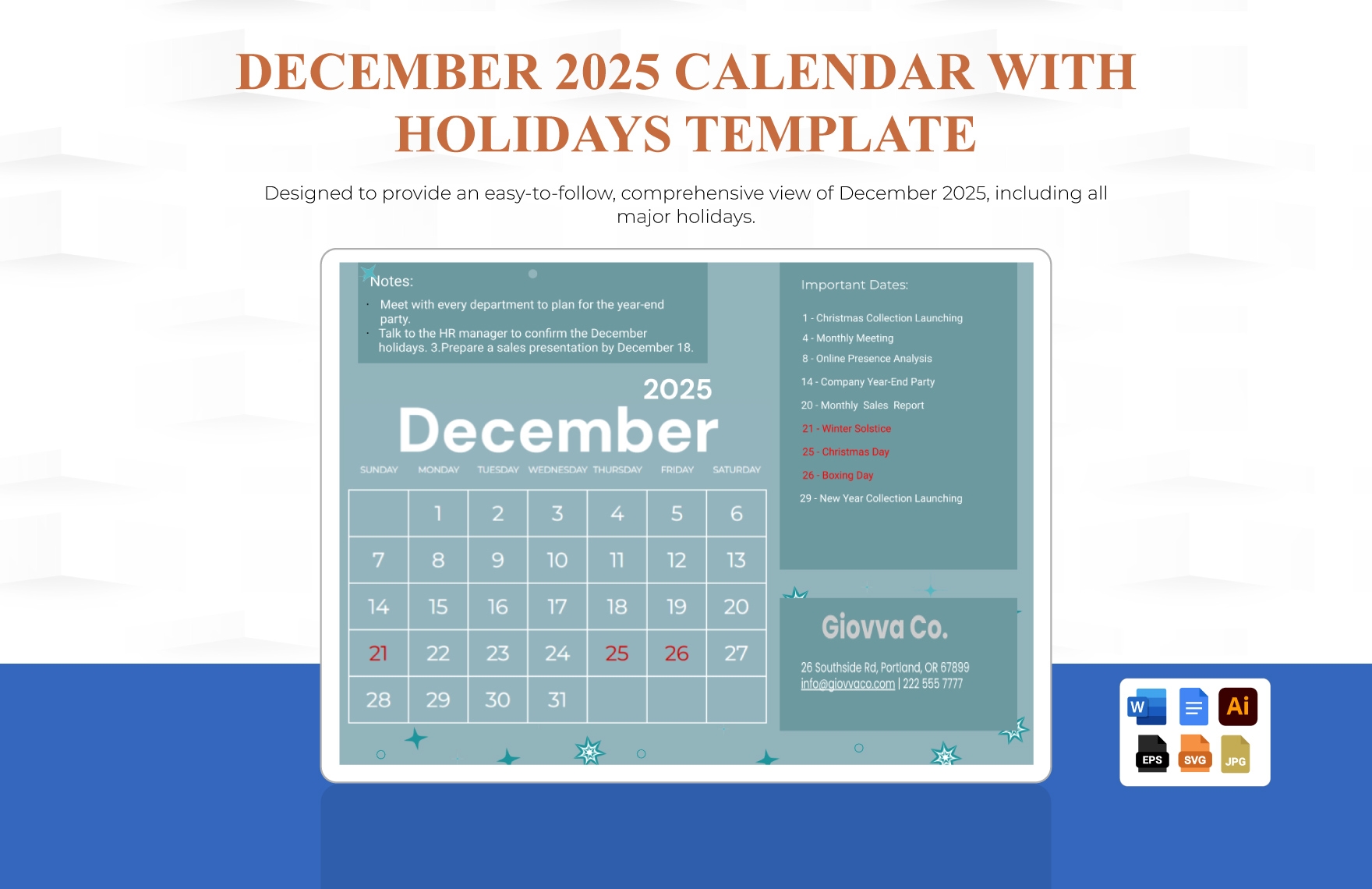 December 2025 Calendar With Holidays In EPS Illustrator JPG Word SVG Google Docs To Download Template