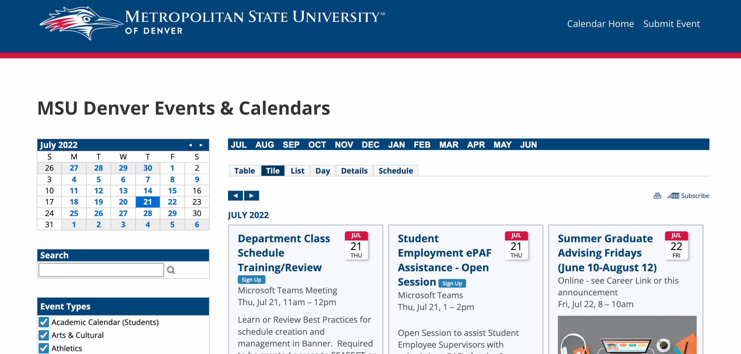 Campus Wide Events Calendar MSU Denver