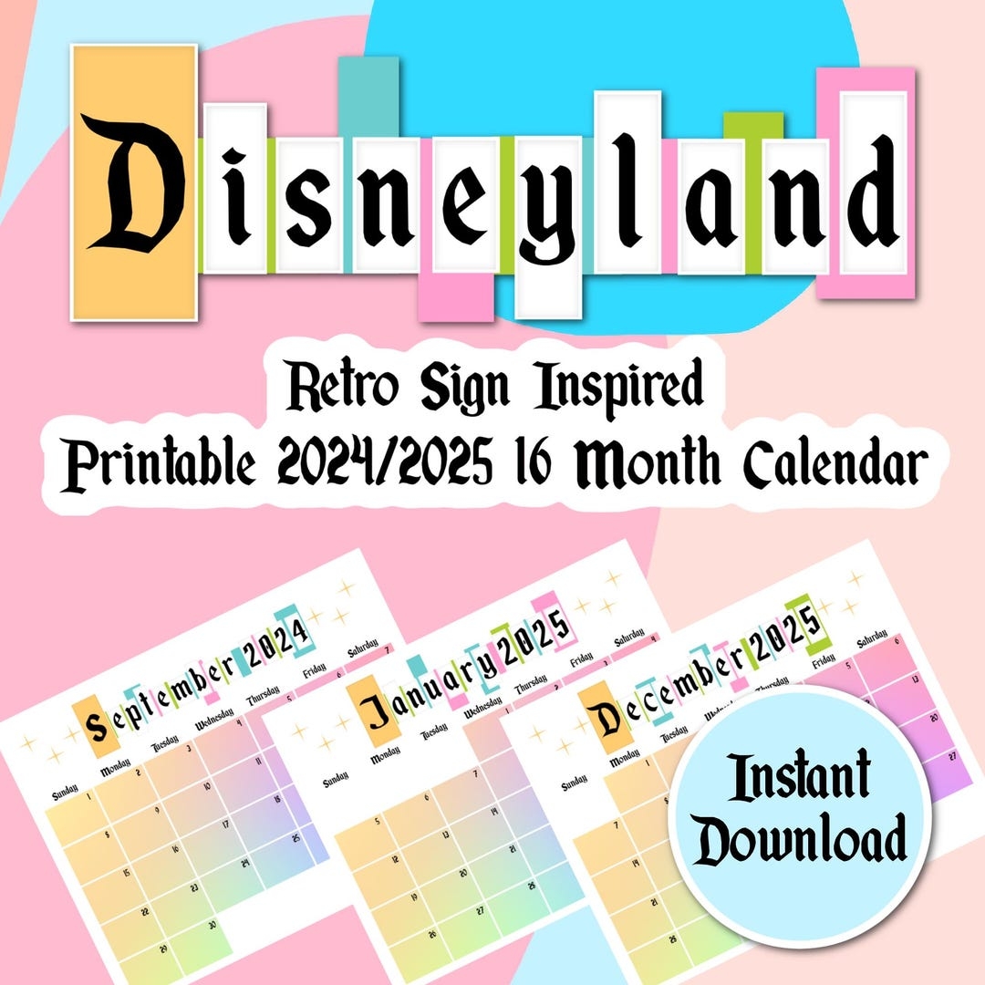 2024 25 Retro Disneyland Style Printable 16 month Calendar