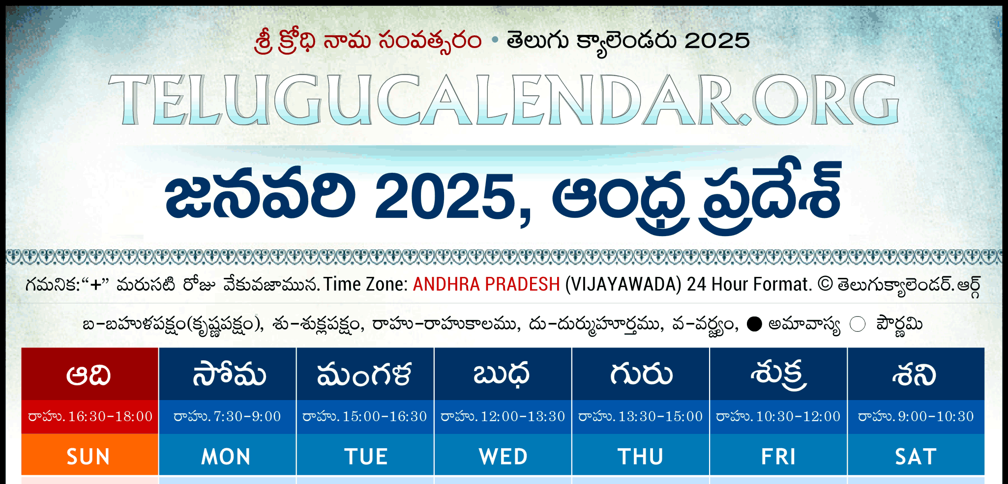 Andhra Pradesh Telugu Calendar 2025 January PDF Festivals