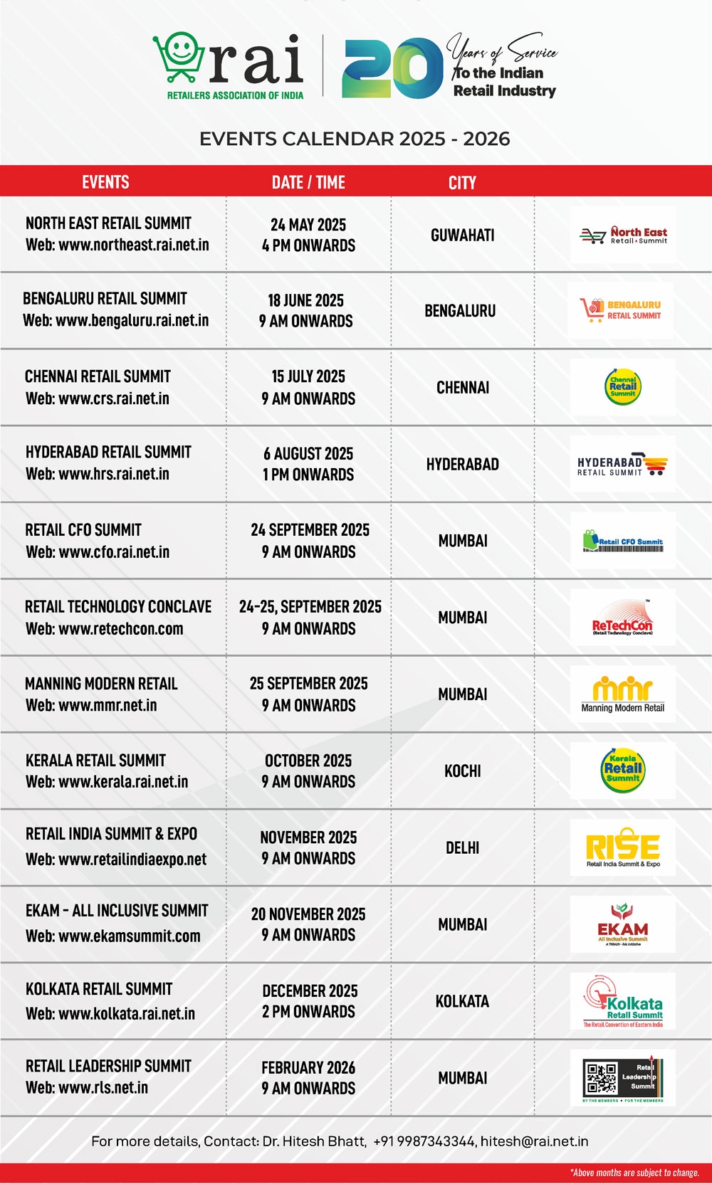 Events Calendar Retailers Association Of India RAI