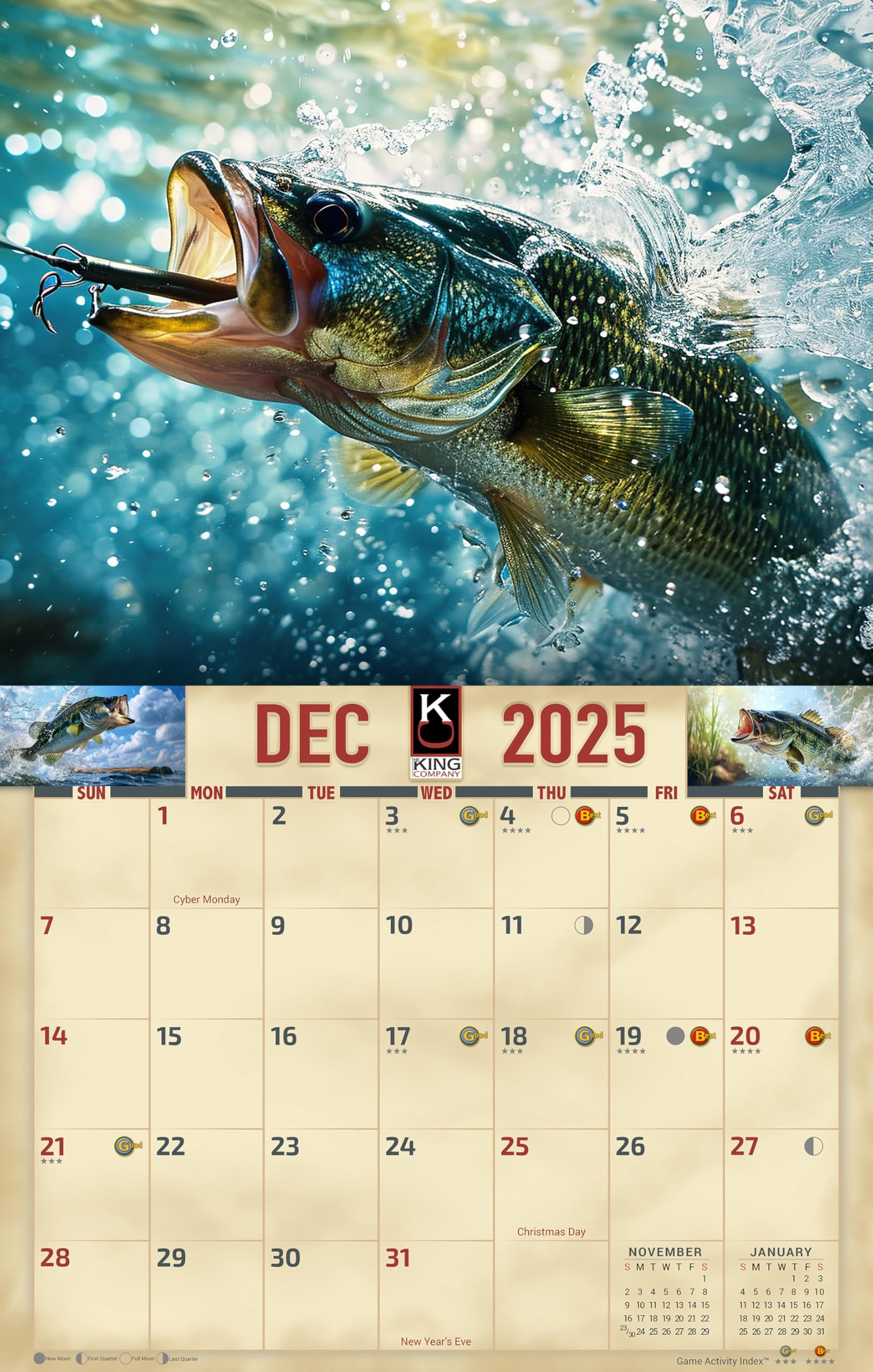 Amazon 2025 Bass Fishing Wall Calendar 16 Month X Large Size 14×22 Best Fishing Calendar By The KING Company Monster Calendars 2025 Bass