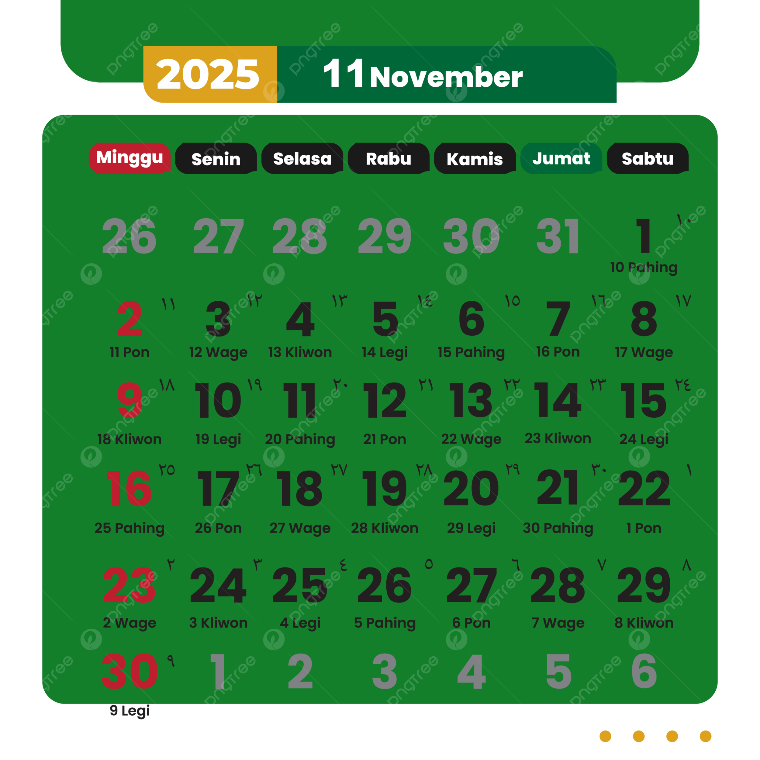 Green Calendar November 2025 Vector Template Download On Pngtree