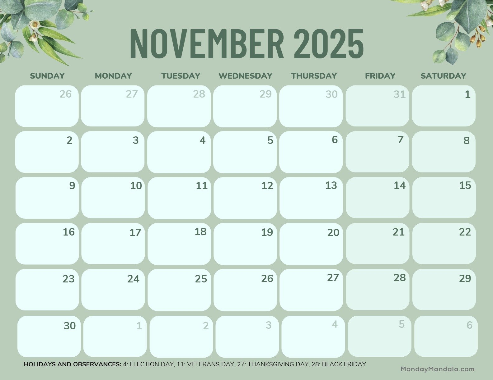 So why wait? Start the month off right by downloading or purchasing your very own Green November 2025 calendar today. With a little bit of planning and a touch of green, you’ll be well on your way to a successful and stress-free month ahead.