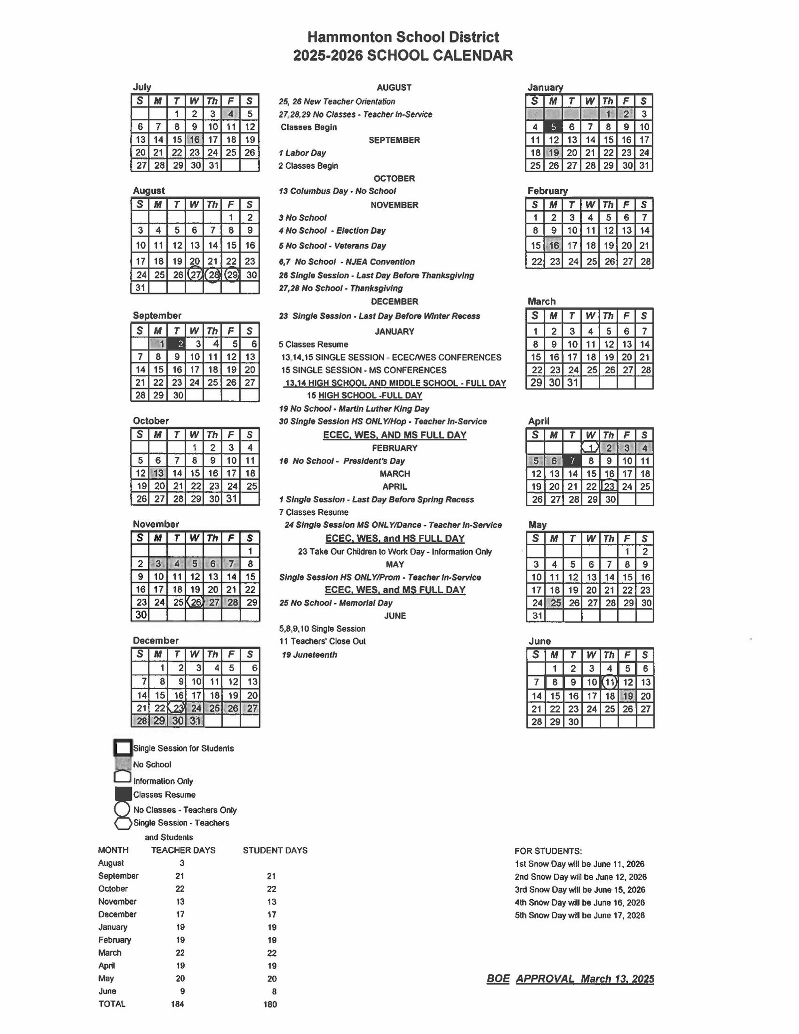 Hammonton Public Schools Calendar 25 26 Revised PDF EduCounty