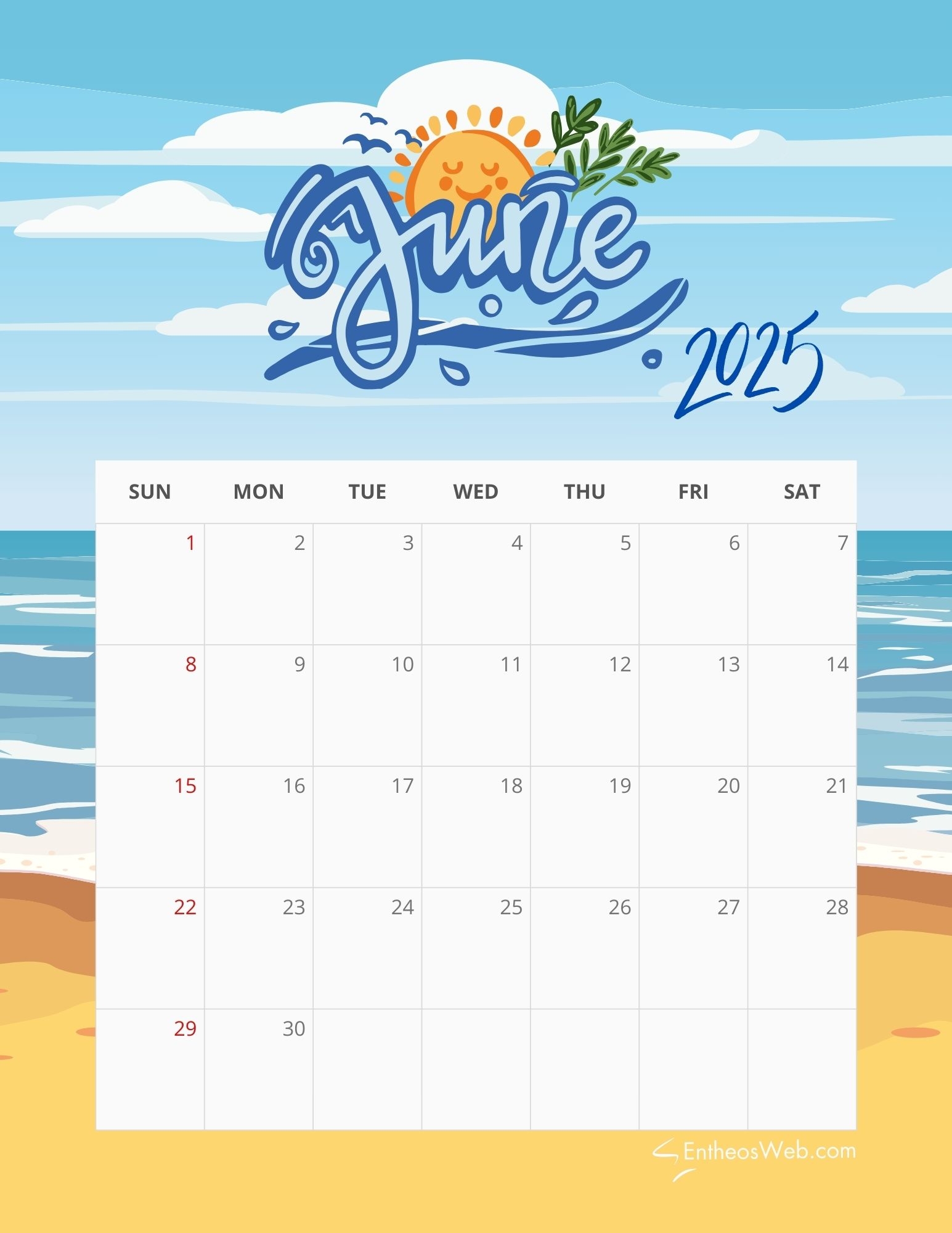 Free June 2025 Calendar Printable PDF Template With Holidays