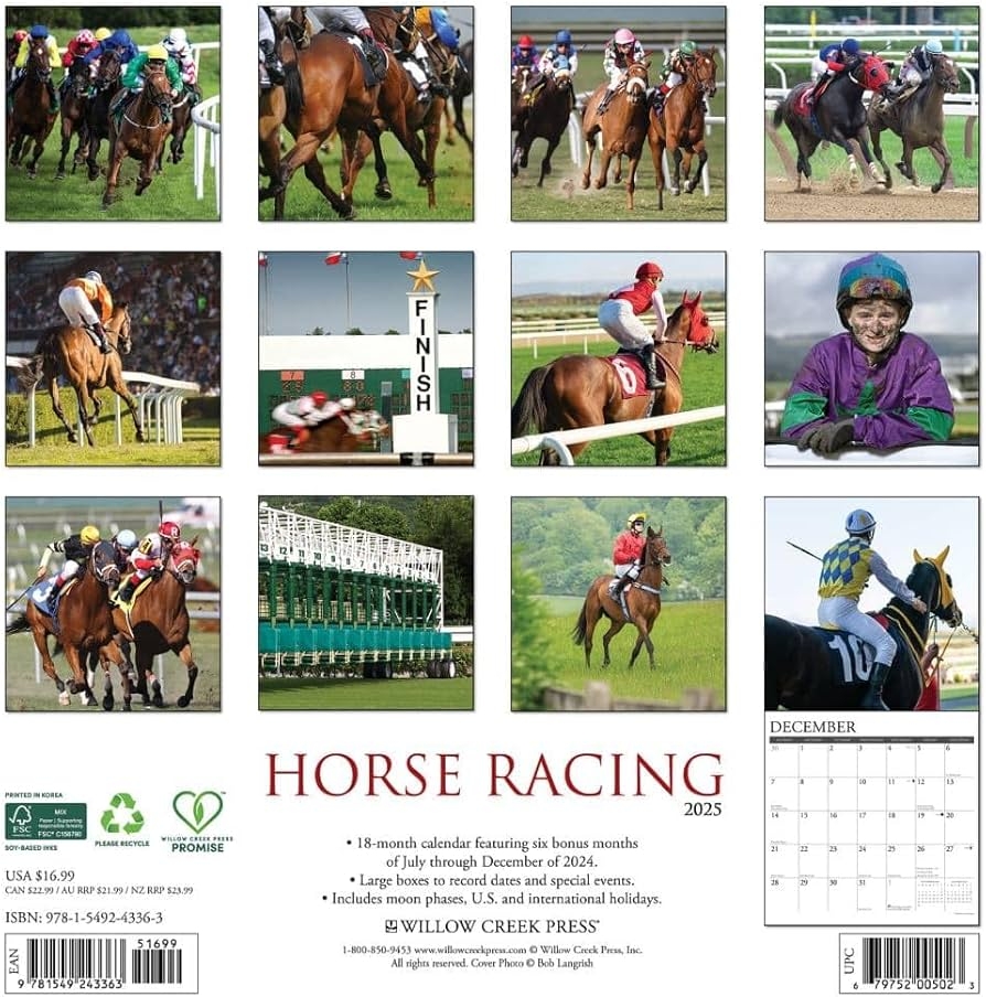 Willow Creek Press Calendars Horse Racing 2025 Wall Calendar
