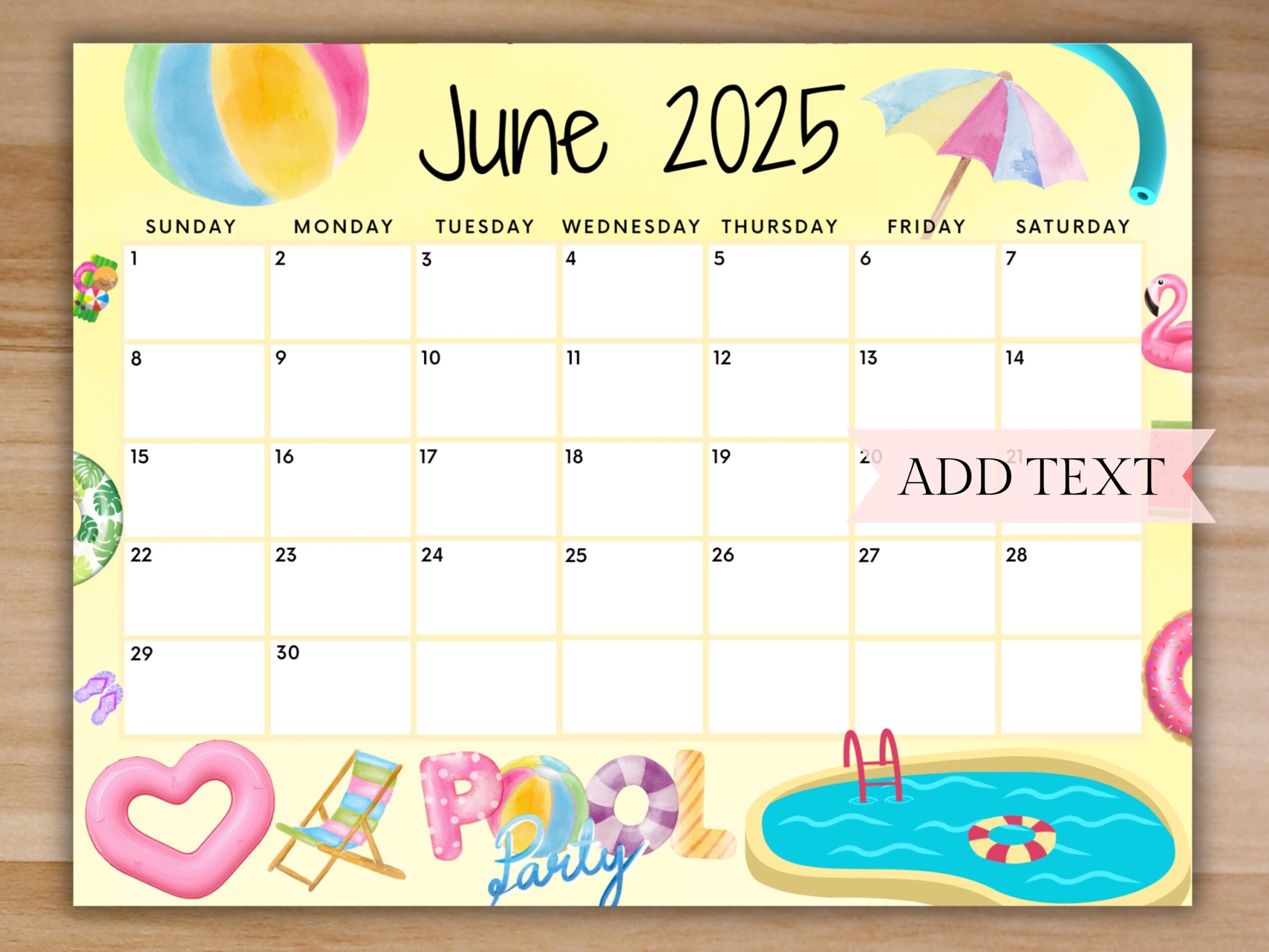 Editable June 2025 Calendar Printable Sunny Summer Calendar Cute Calendar W Beach Ball And Pool Party Monthly Calendar Family Calendar Etsy Australia