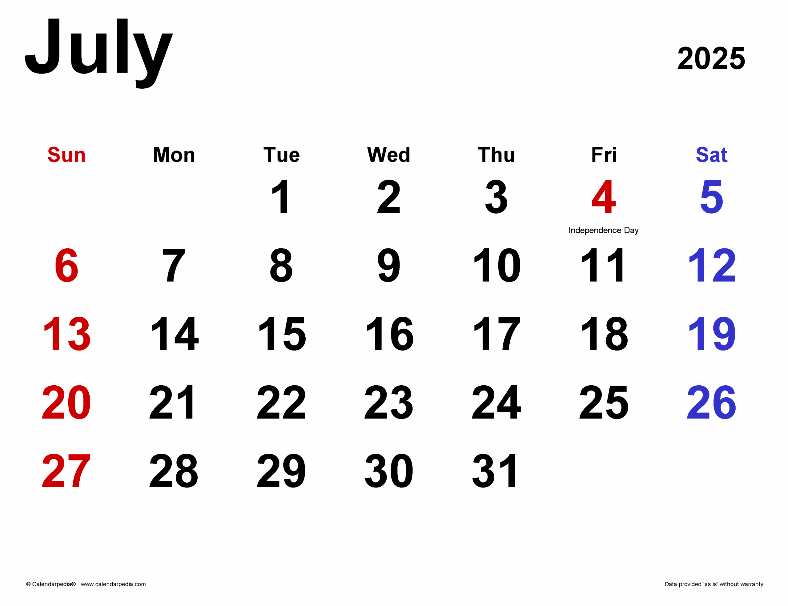July 2025 Calendar Templates For PDF Excel And Word