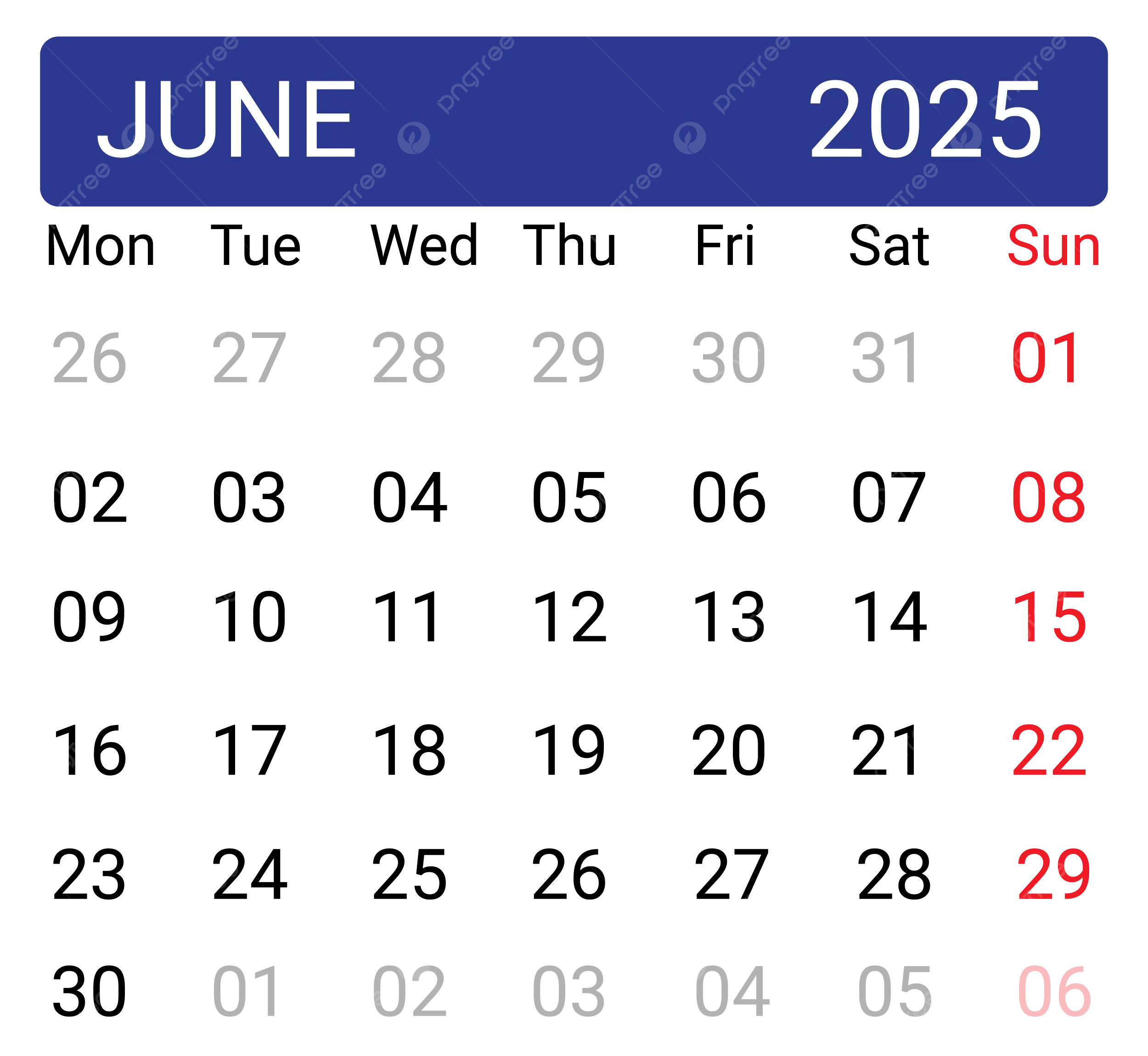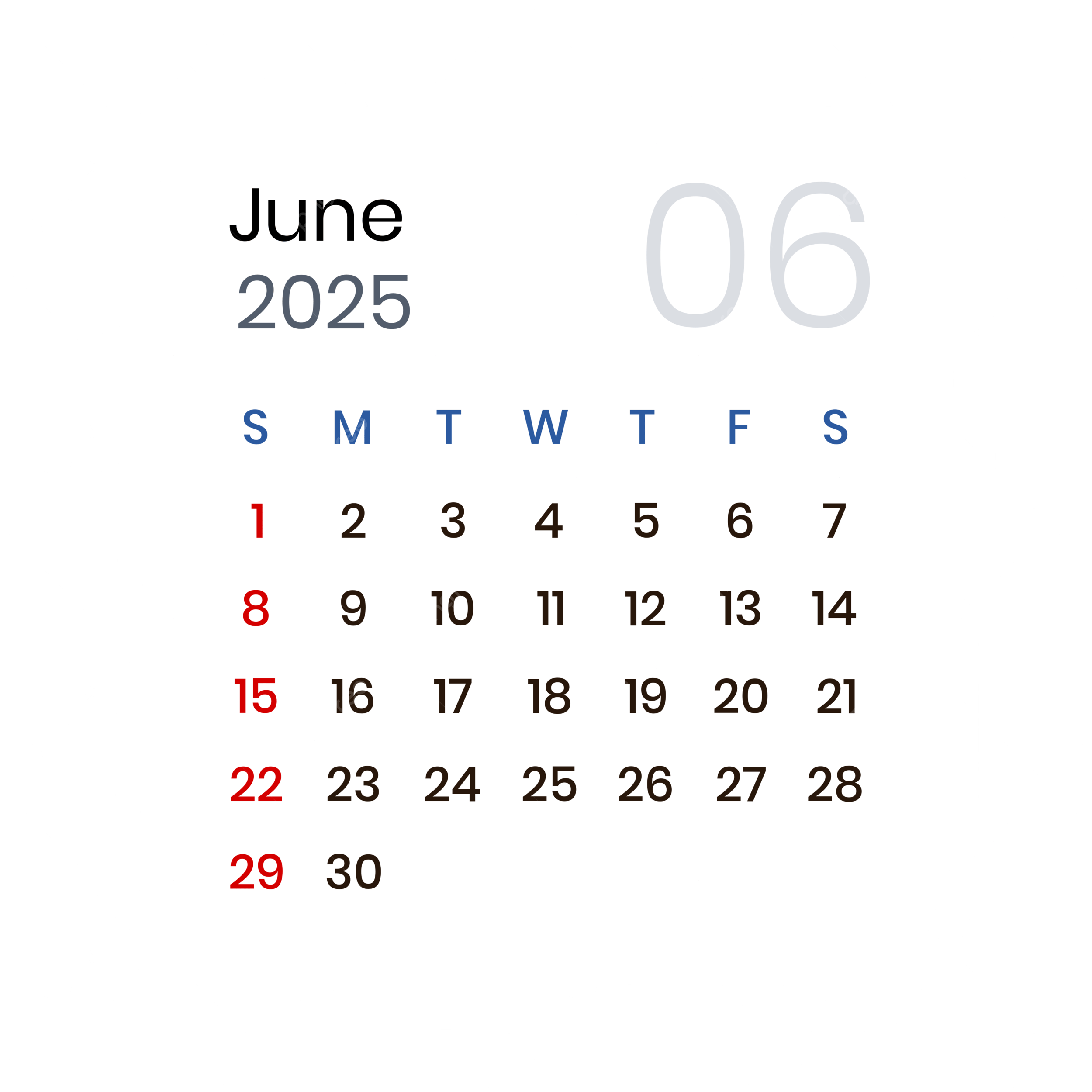 June 2025 Calendar Minimalist Vector June 2025 June 2025 Calendar Calendar 2025 PNG And Vector With Transparent Background For Free Download