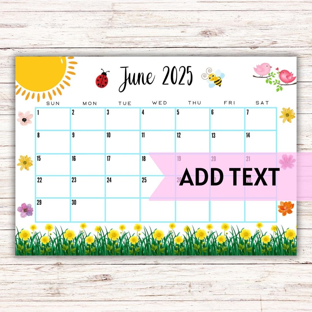 EDITABLE June 2025 Calendar Gorgeous Summer With Beautiful Sunflowers Printable Classroom Calendar Monthly Planner Kids School Schedule Etsy