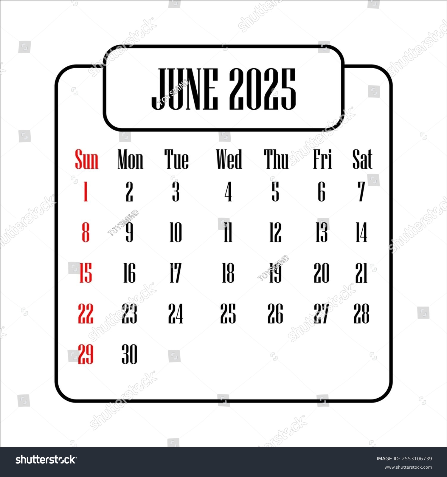 Illustration June 2025 Calendar Stock Vector Royalty Free 2553106739 Shutterstock