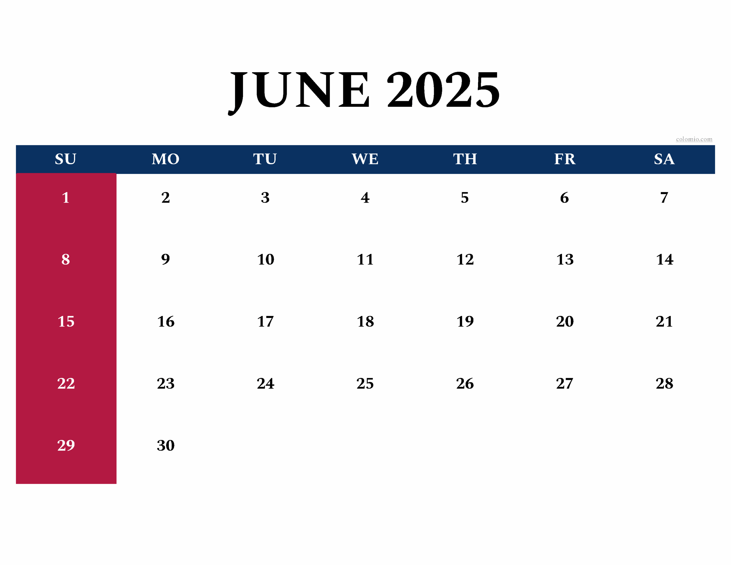 June 2025 Calendar Free Printable PDF XLS And PNG