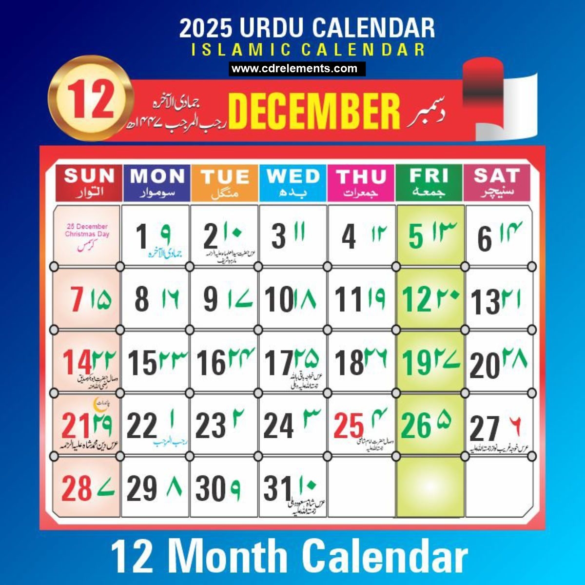 Urdu Calendar 2025 CDR File Islamic Calendar 2025 CDR File 2025 January Urdu Calendar Cdrelements
