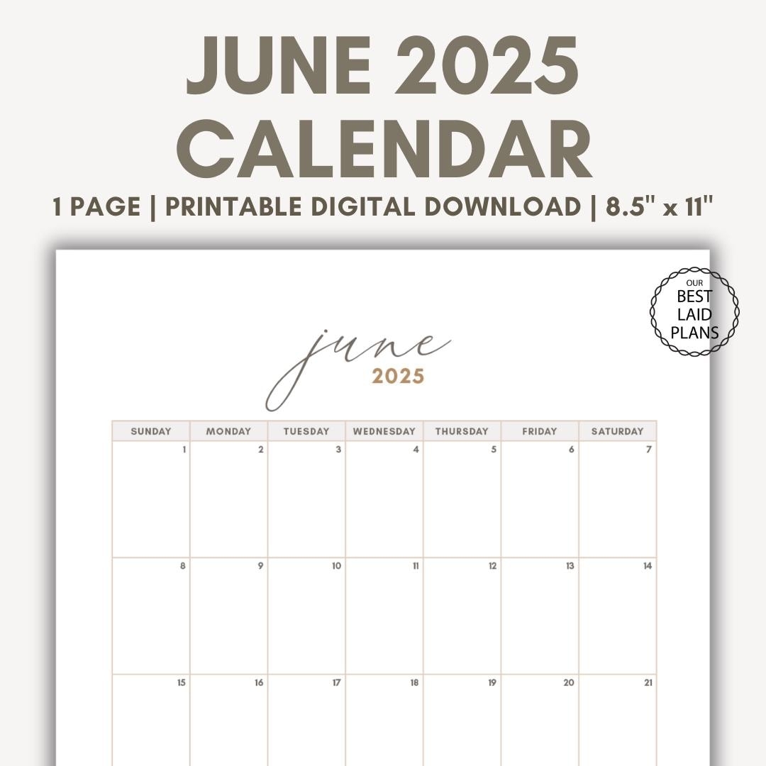 June 2025 Calendar Printable Download June 2025 Printable PDF June Calendar 2025 Portrait Blank Minimalist Wall Calendar June Month 2025 Etsy