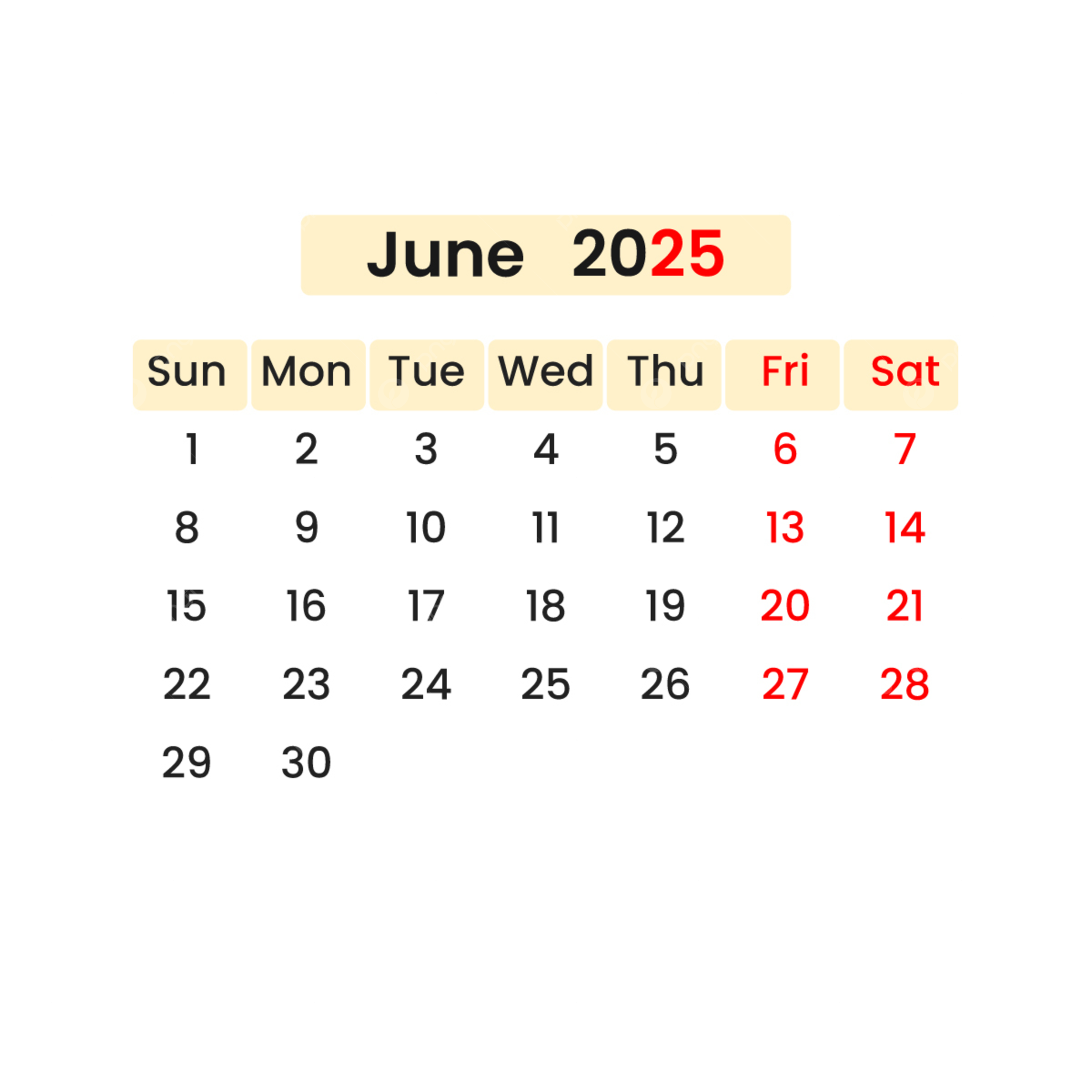 June Complete Vector National Holidays Calendar 2025 2025 Calendar Calendar 2025 Vector June Calendar PNG And Vector With Transparent Background For Free Download