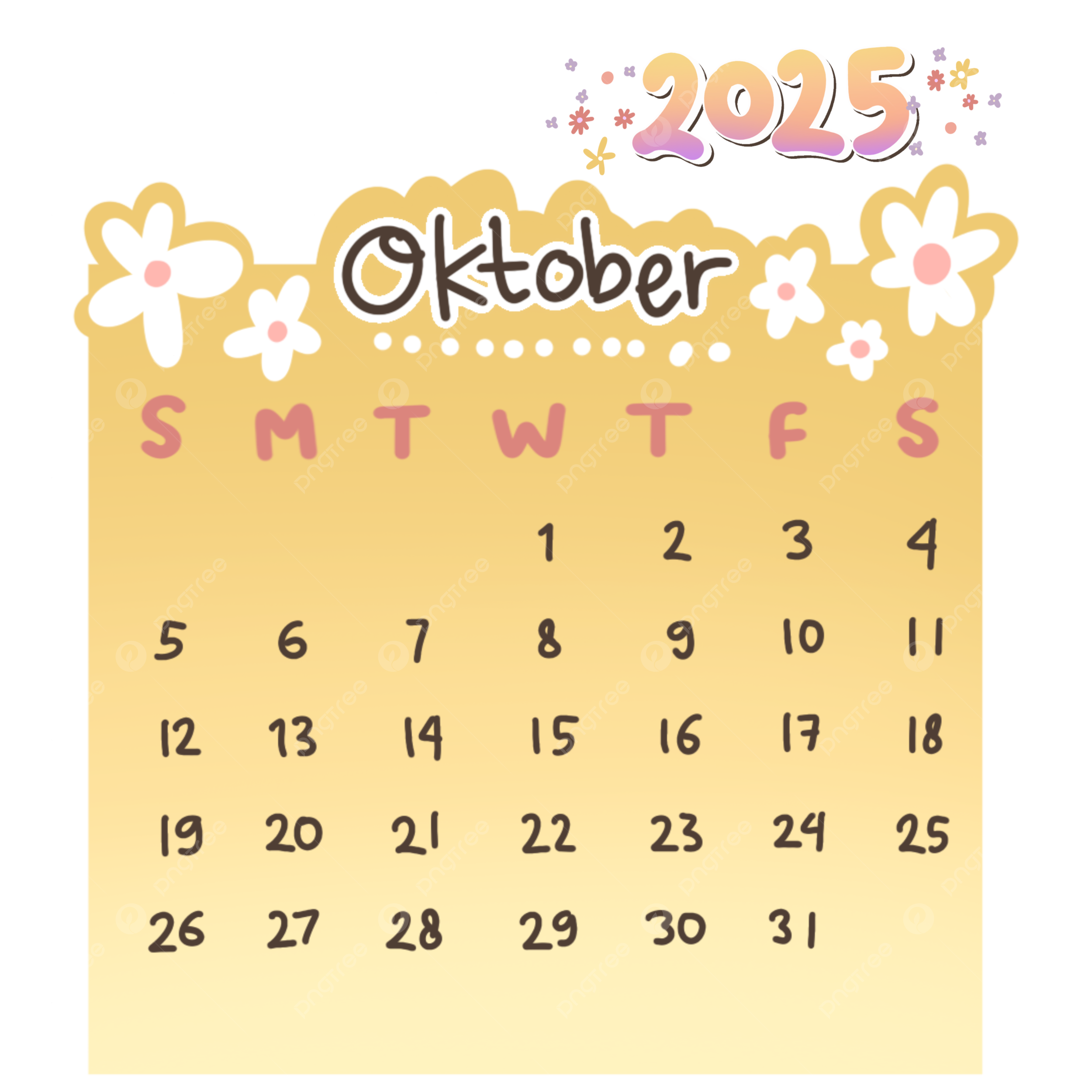 2025 October Calendare Cute Monthly Hand Drawn Printable Calendar Set 2025 Calendar 2025 October October Calendar 2025 PNG Transparent Clipart Image And PSD File For Free Download