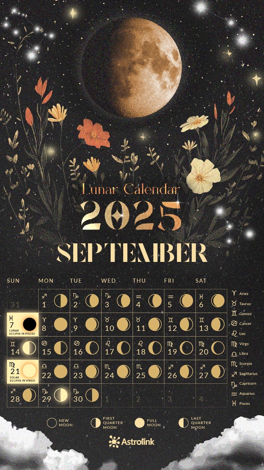 September 2025 Lunar Calendar Moon Cycles Moon Phases Stock