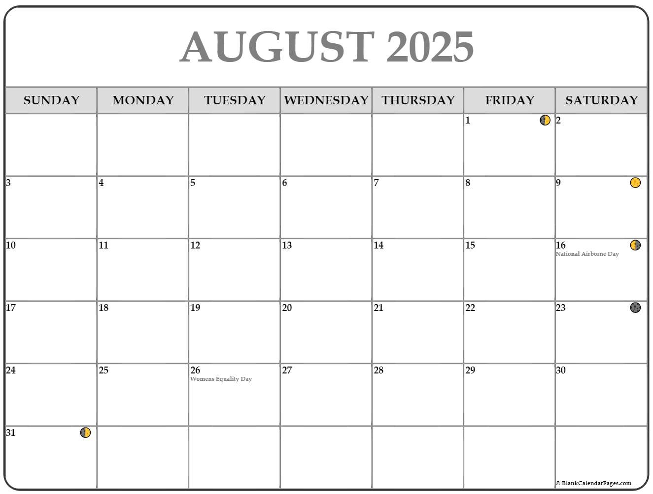 August 2025 Moon Phases Calendar Custom Calendar Maker