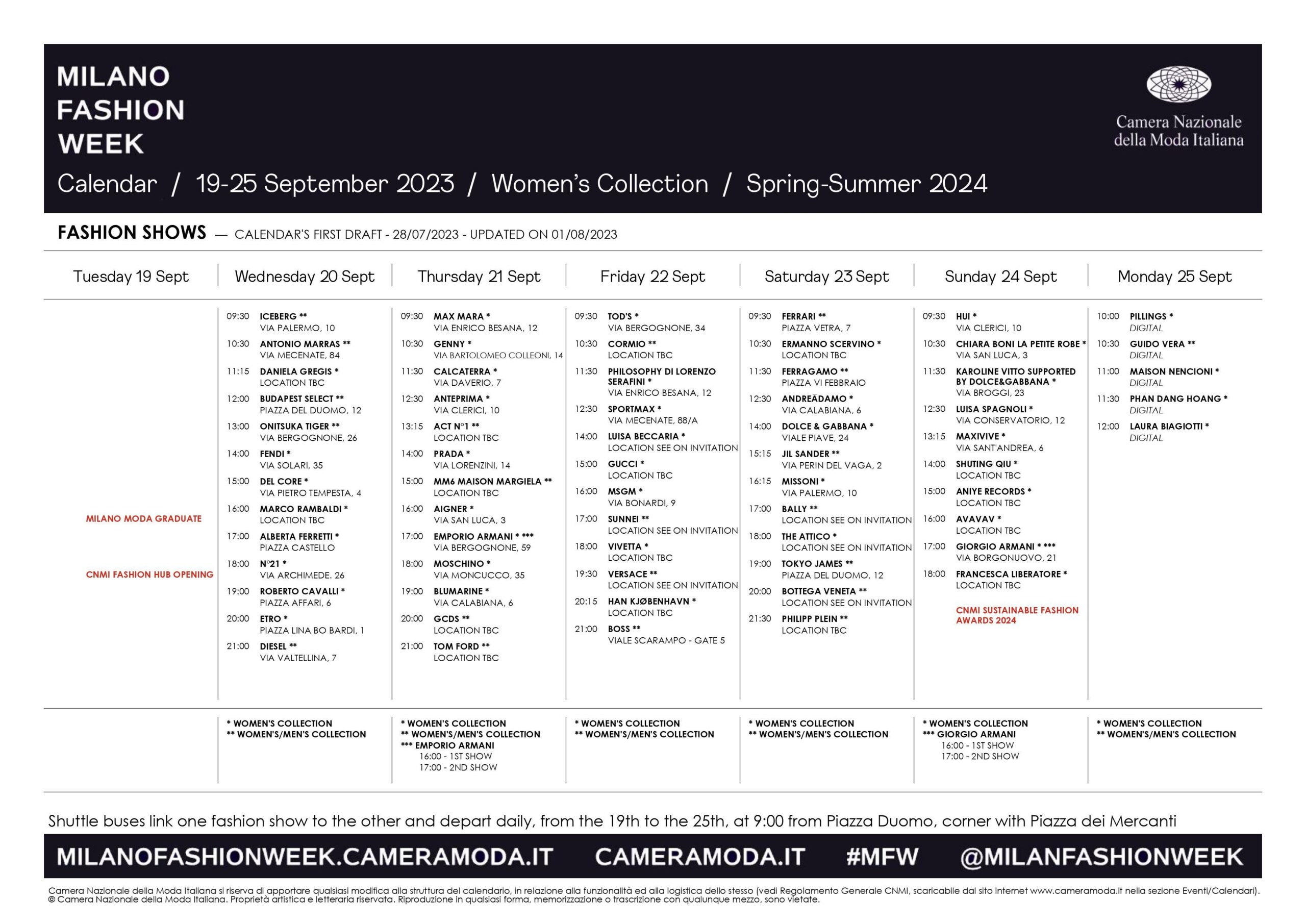 Official Milan Fashion Week Schedule Spring Summer 2025
