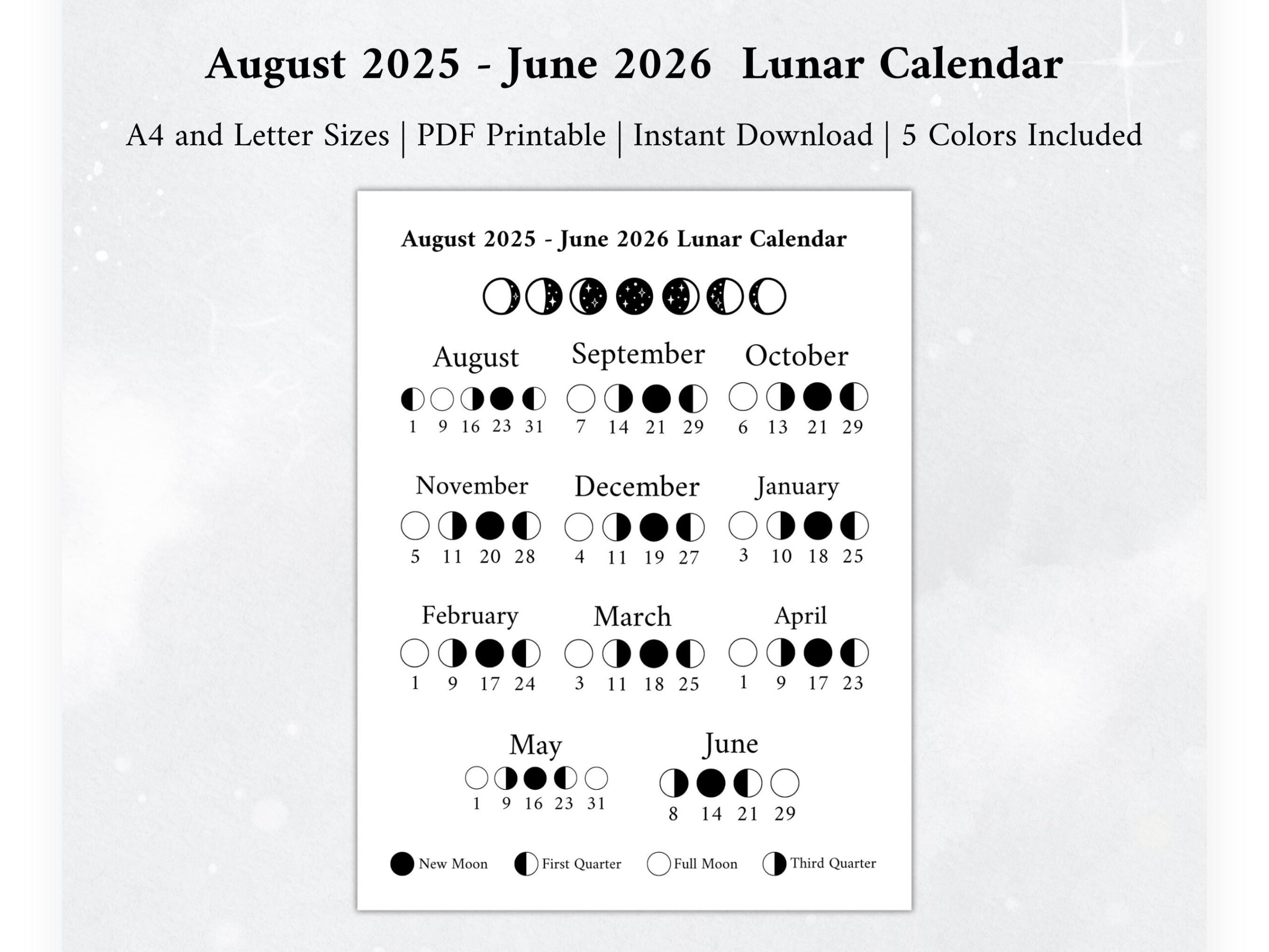 2025 2026 Moon Calendar Moon Phase Calendar Lunar Calendar