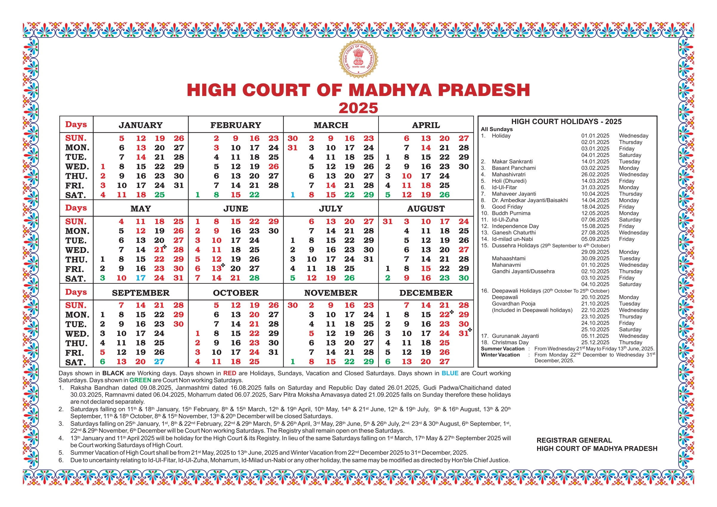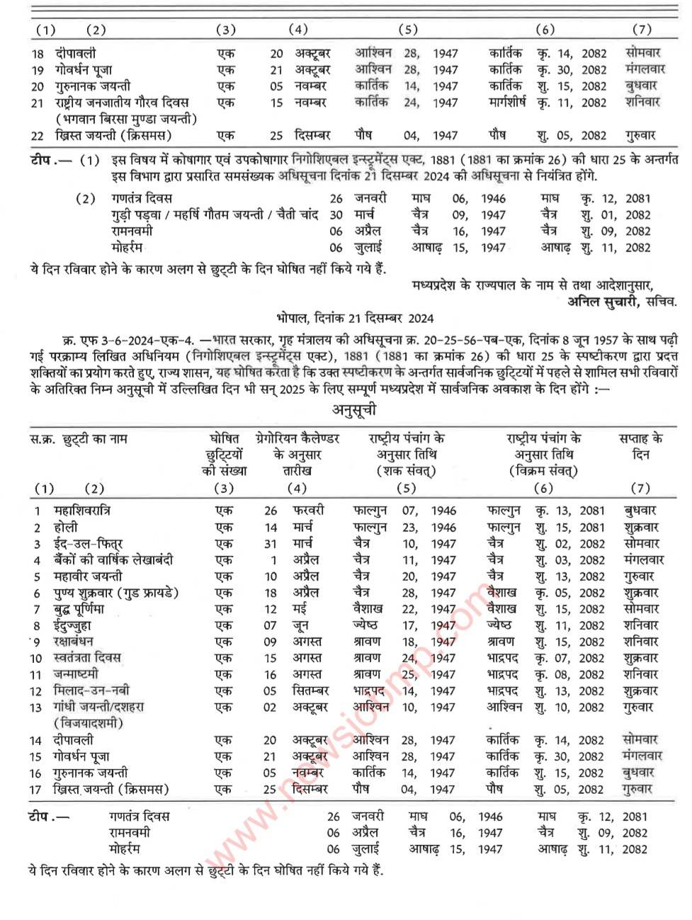 MP Govt Holiday Calender 2025 22 68 MP Govt Holiday Calender 2025 22 Holidays And 68 Optional Holidays In The New Year Saturday Sunday Separately