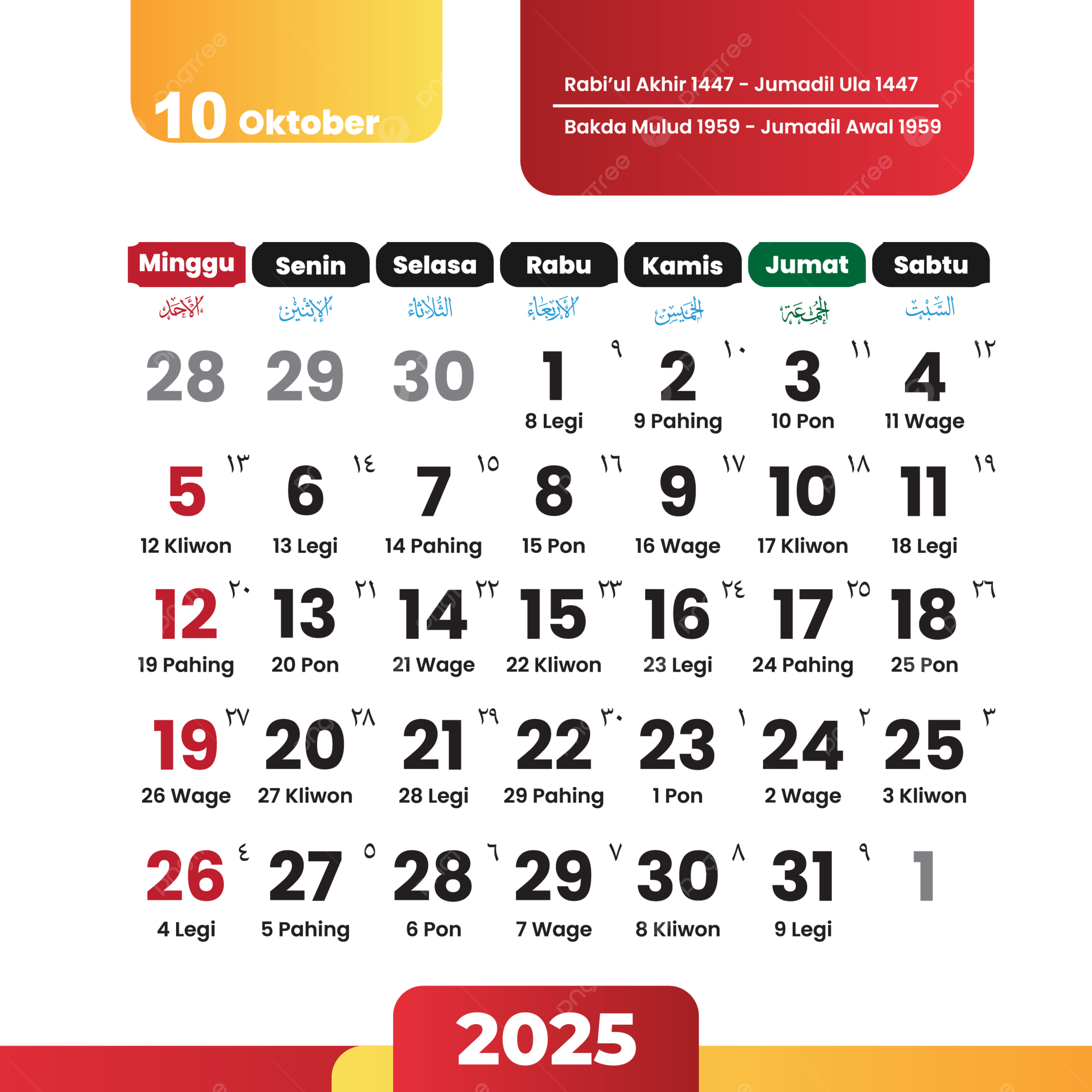October 2025 Complete Indonesian Calendar In Green Vector 2025 Calendar Indonesian Calendar October PNG And Vector With Transparent Background For Free Download