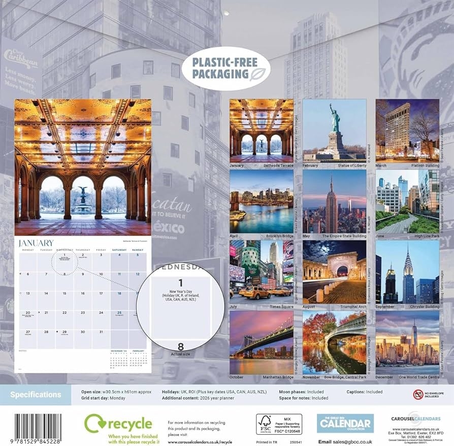 Amazon New York City Calendar 2025 NYC Monthly Wall Calender 12 Month American Made In The USA Office Products