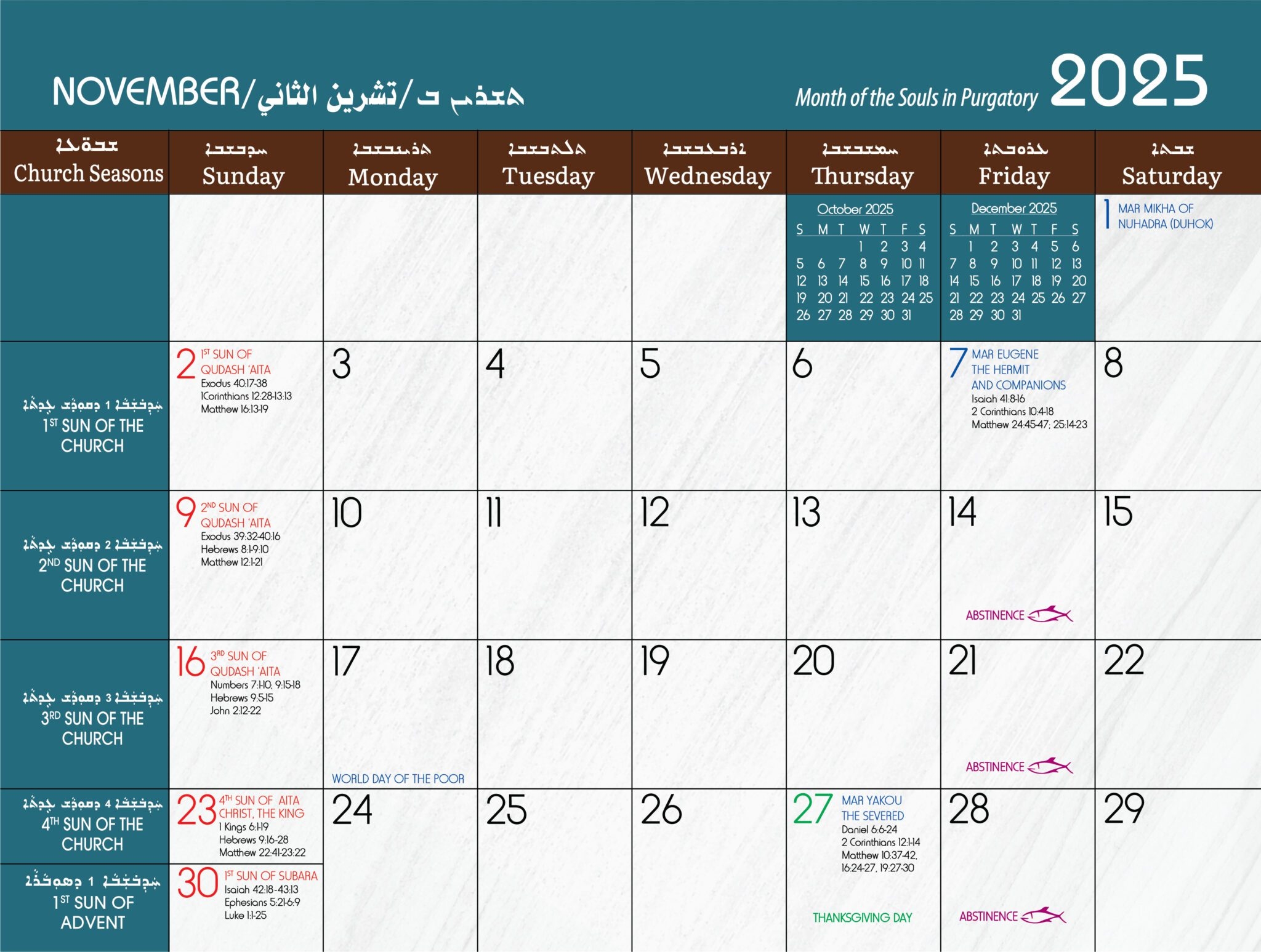 Liturgical Calendar Chaldean Diocese Of St Thomas The Apostle U S A