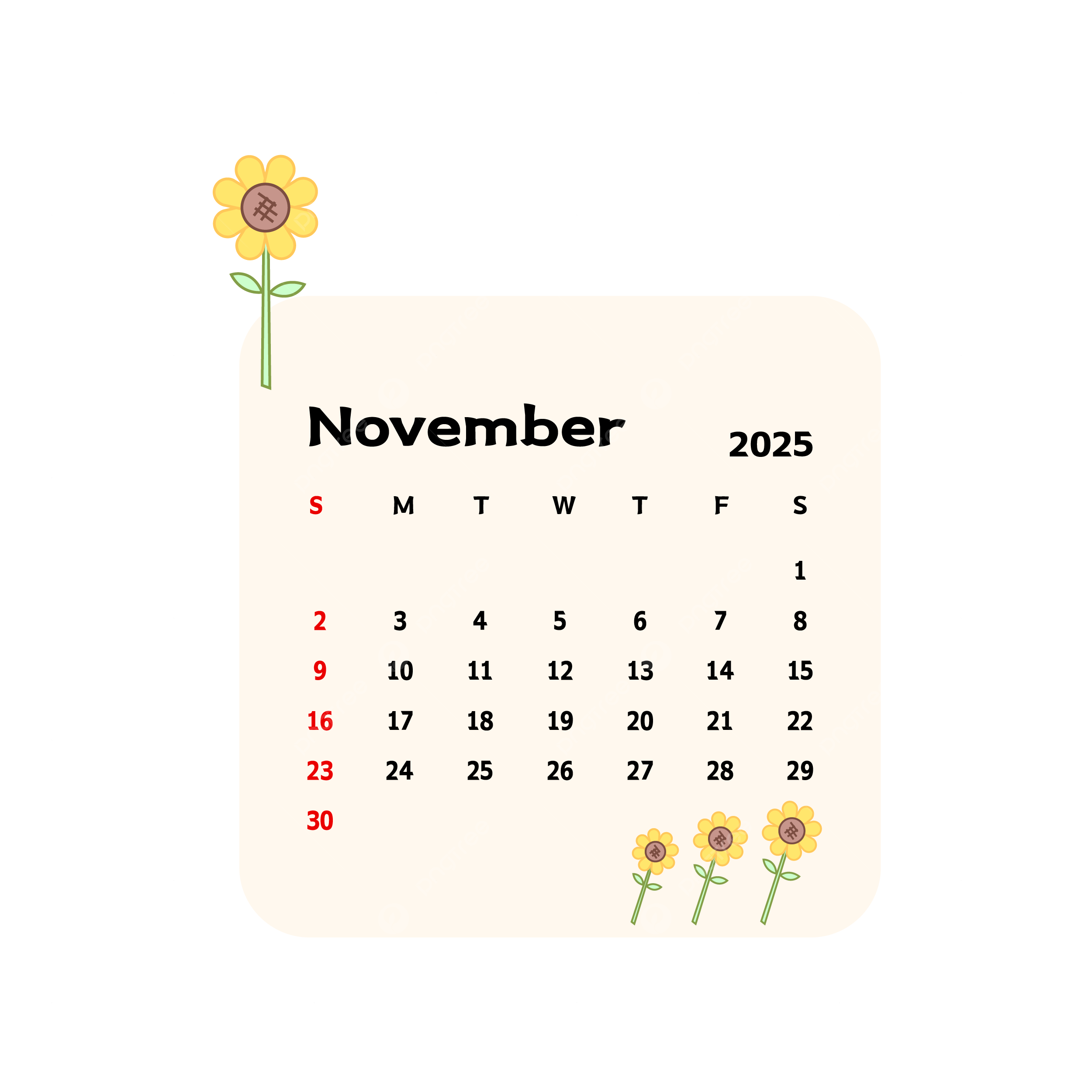 November 2025 Calendar With Cartoon Sunflowers Vector Calendar Clipart November Clipart Cartoon Clipart PNG And Vector With Transparent Background For Free Download