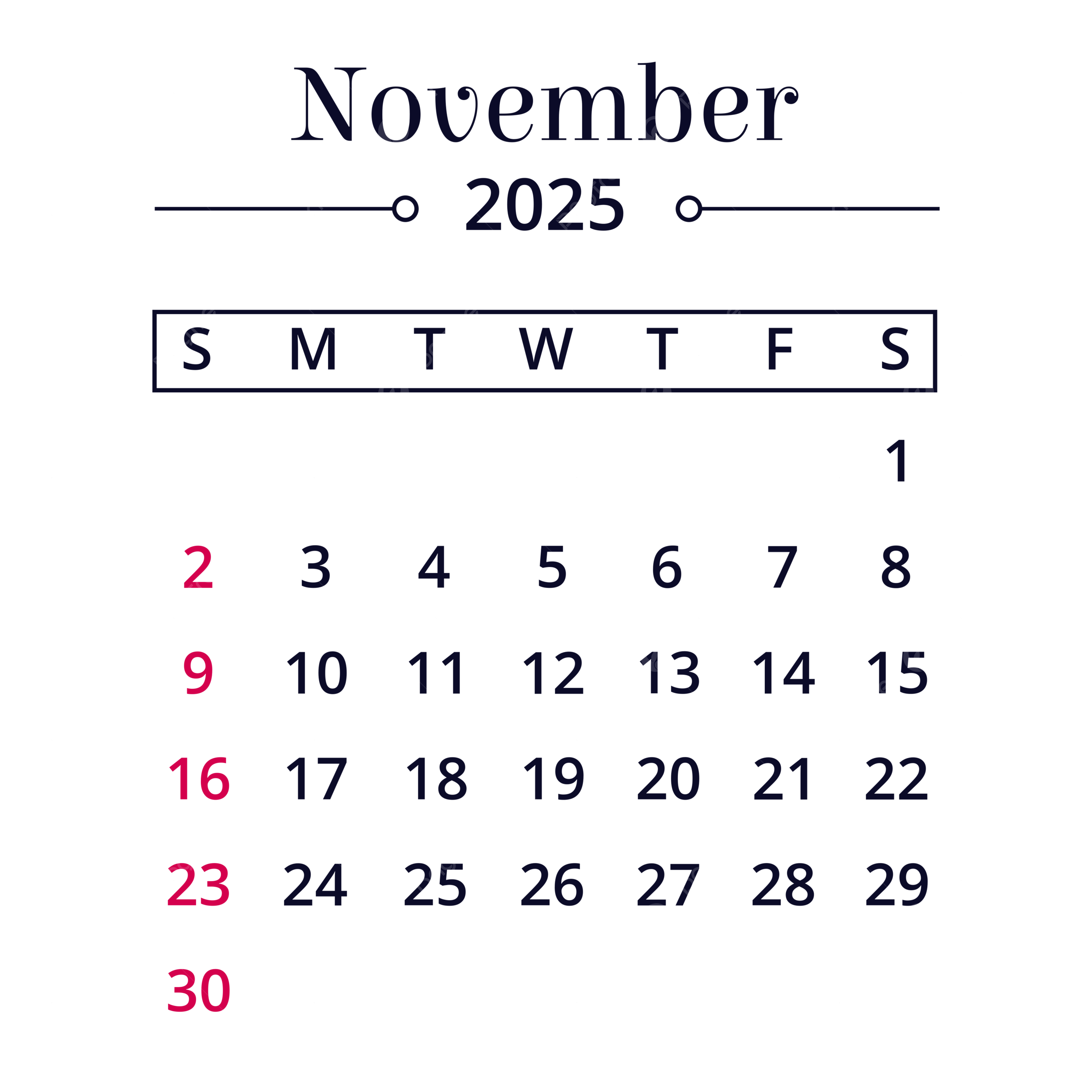 Get creative, stay organized, and make your designs stand out with a transparent background calendar for November 2025. Elevate your projects with this simple yet impactful design element that will set you apart from the rest. Happy designing!
