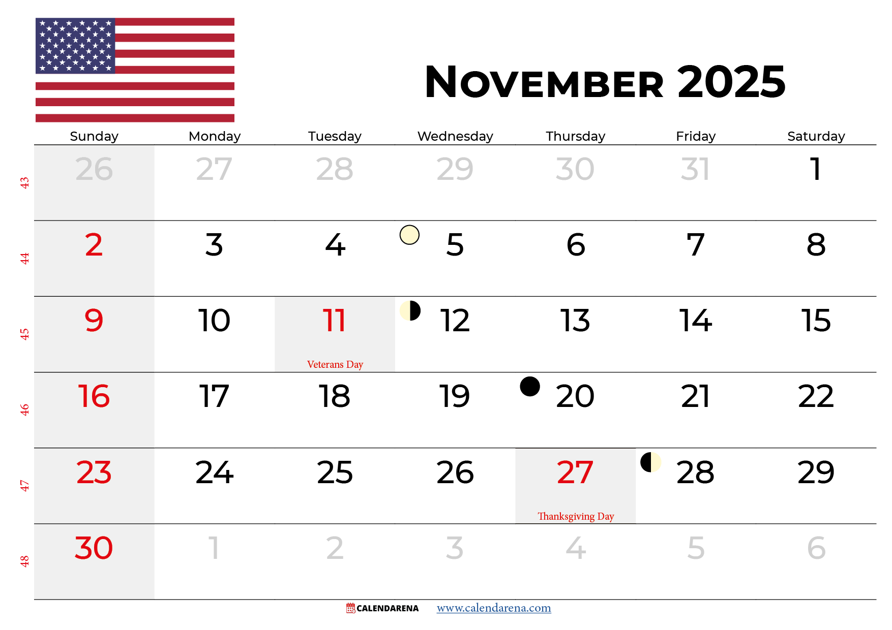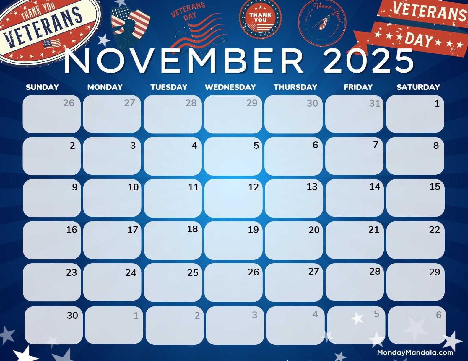 November 2025 Calendar Veterans Day