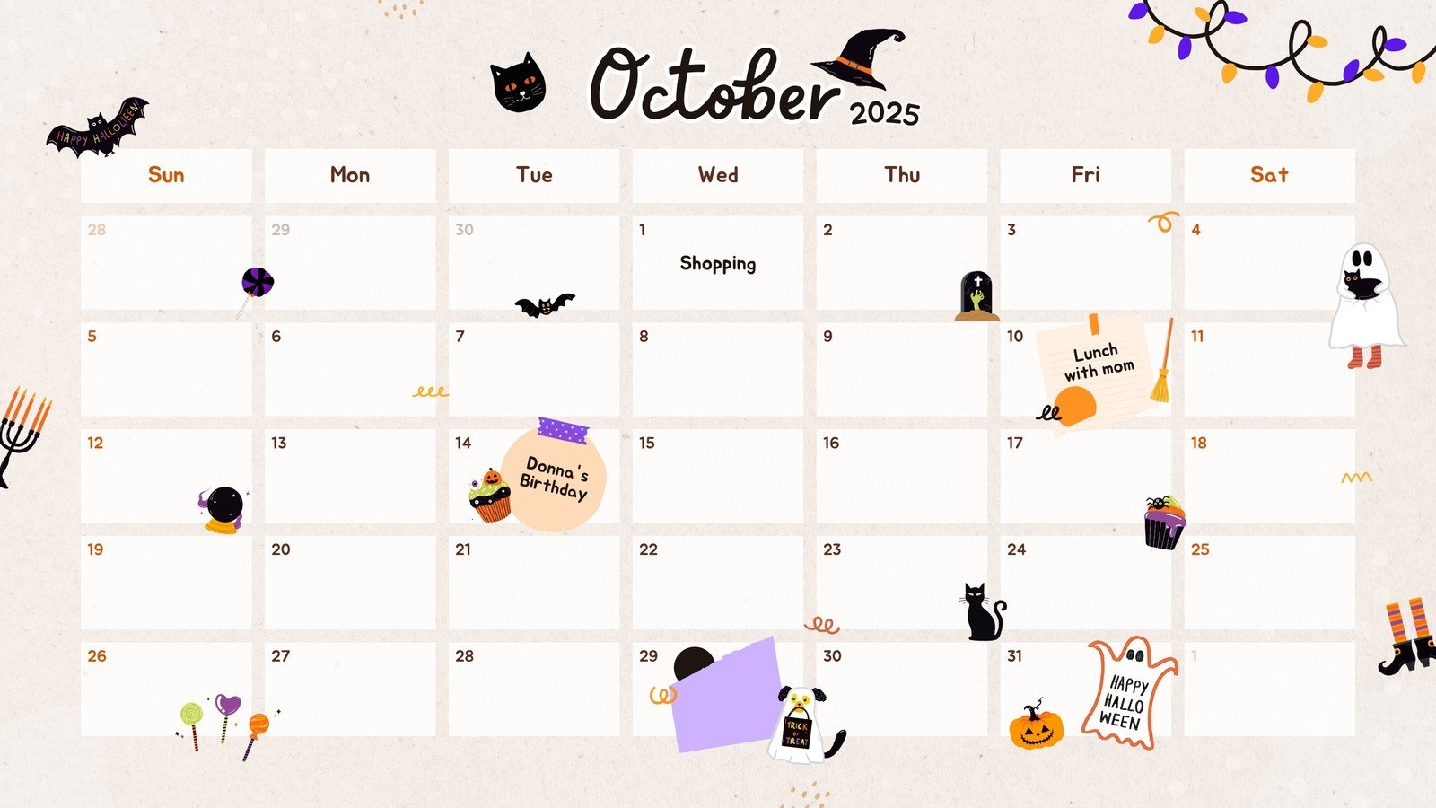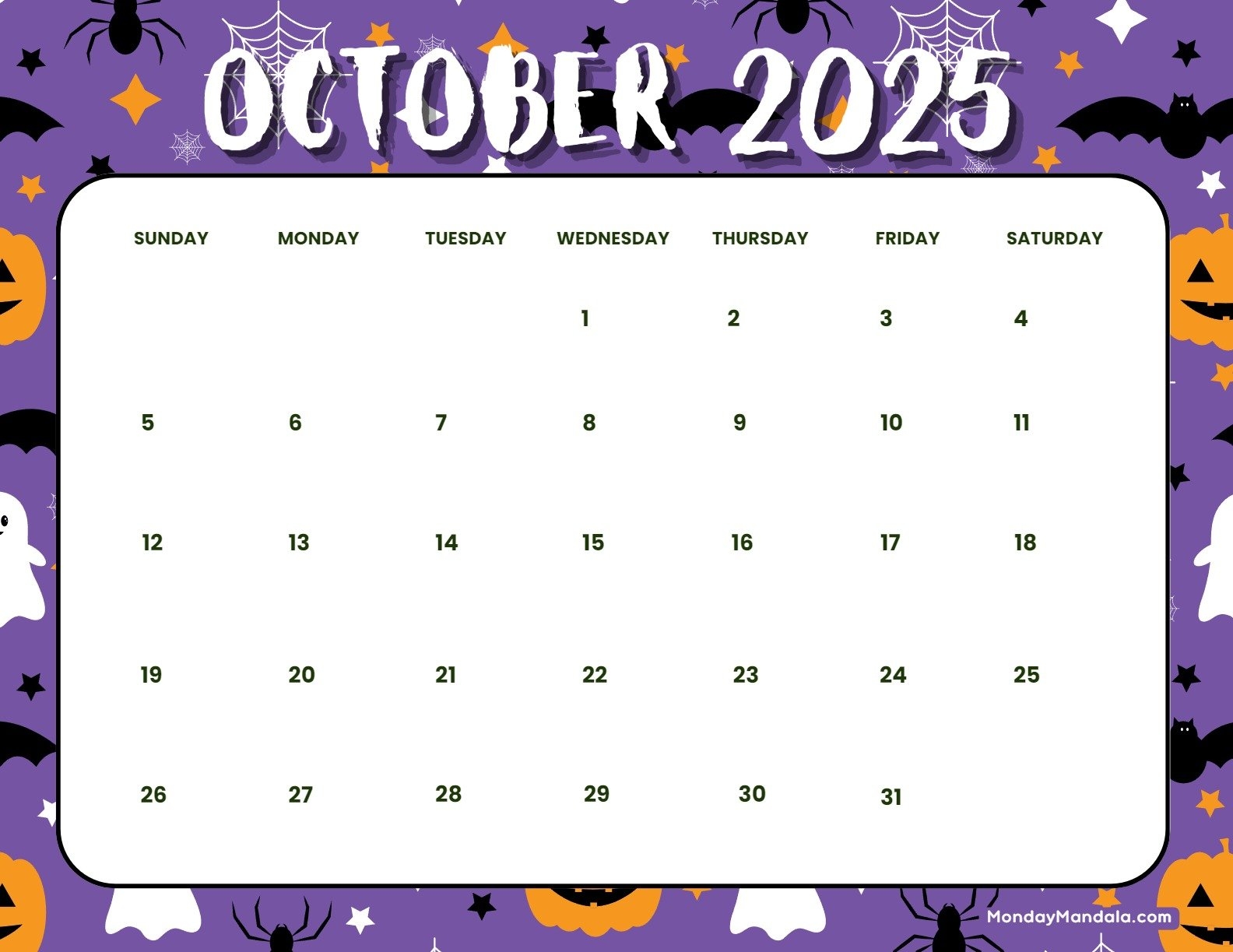 So grab your broomstick, put on your favorite costume, and get ready for a month full of Halloween-themed delights. Our October 2025 calendar is your go-to guide for all things spooky and spectacular this season. Happy haunting!
