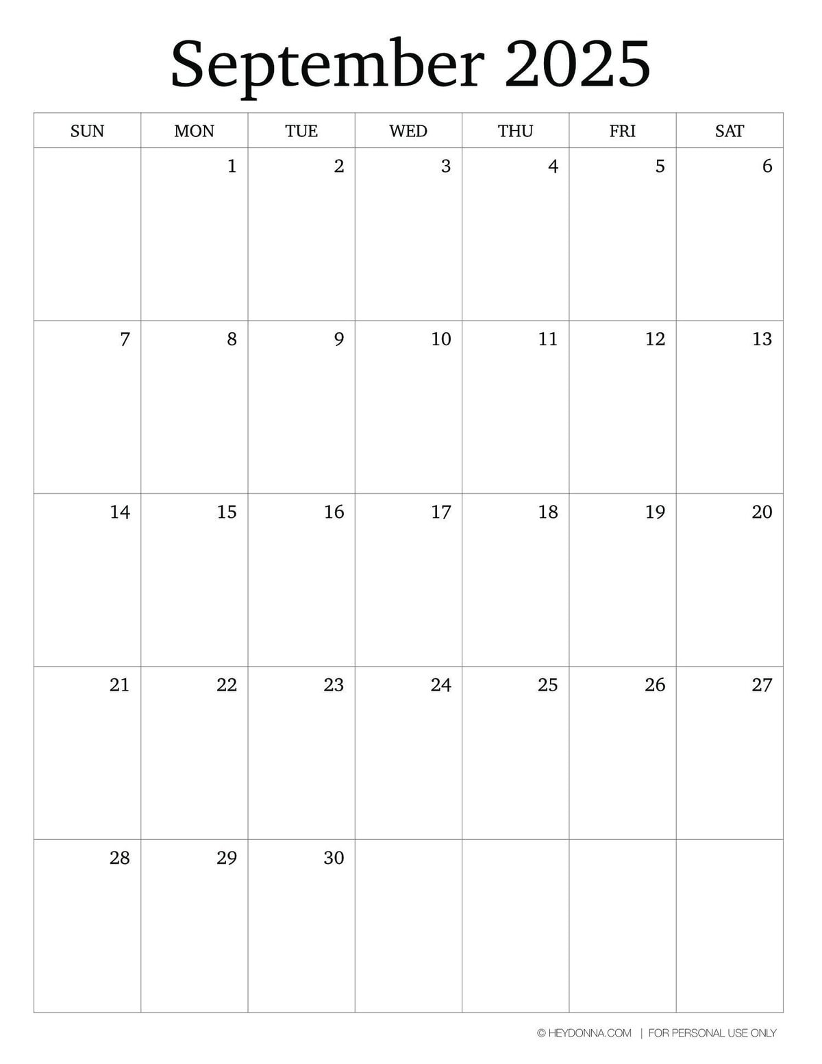 Printable September 2025 Monthly Calendar Hey Donna