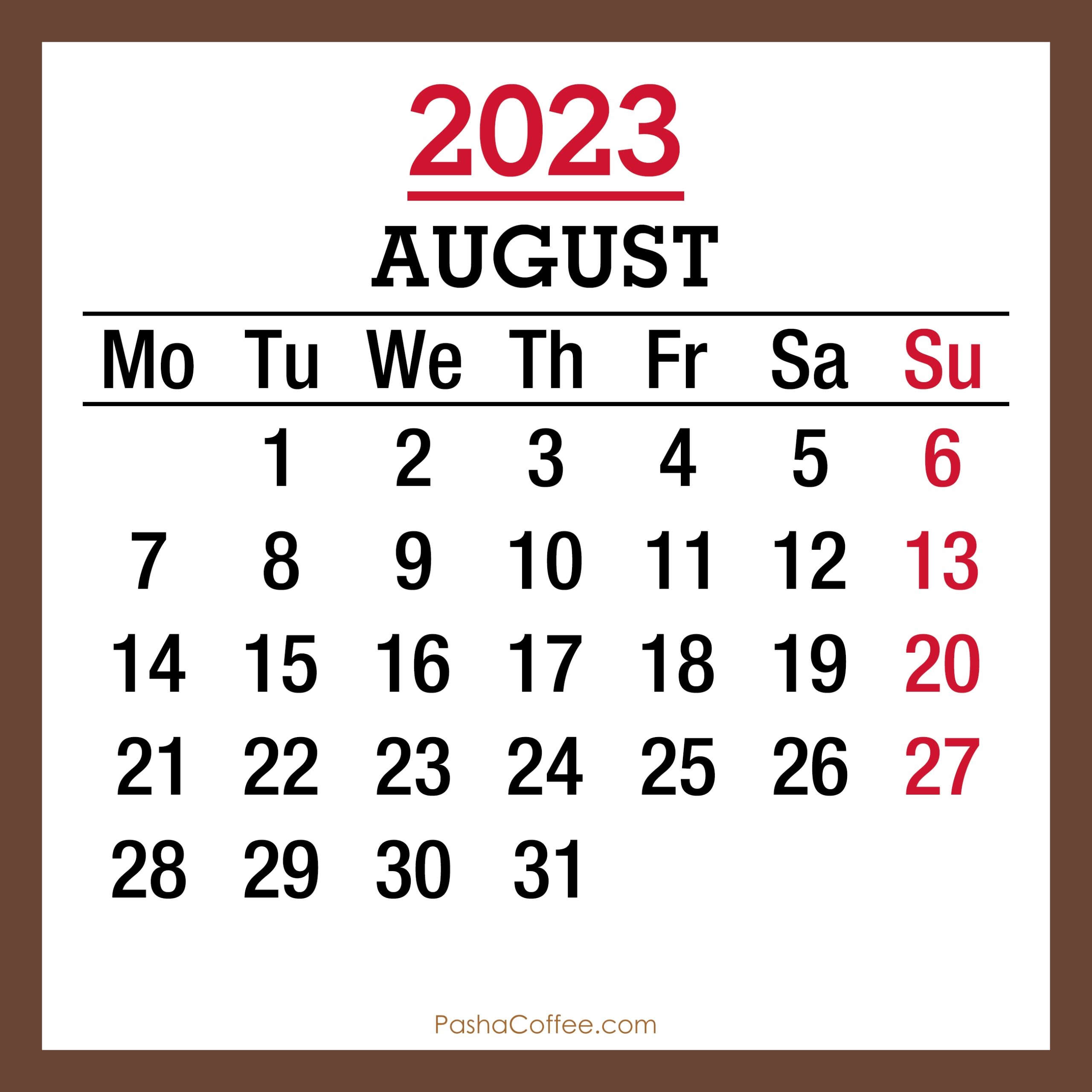 August 2023 Monthly Calendar Printable Free Brown Monday Start PashaCoffee